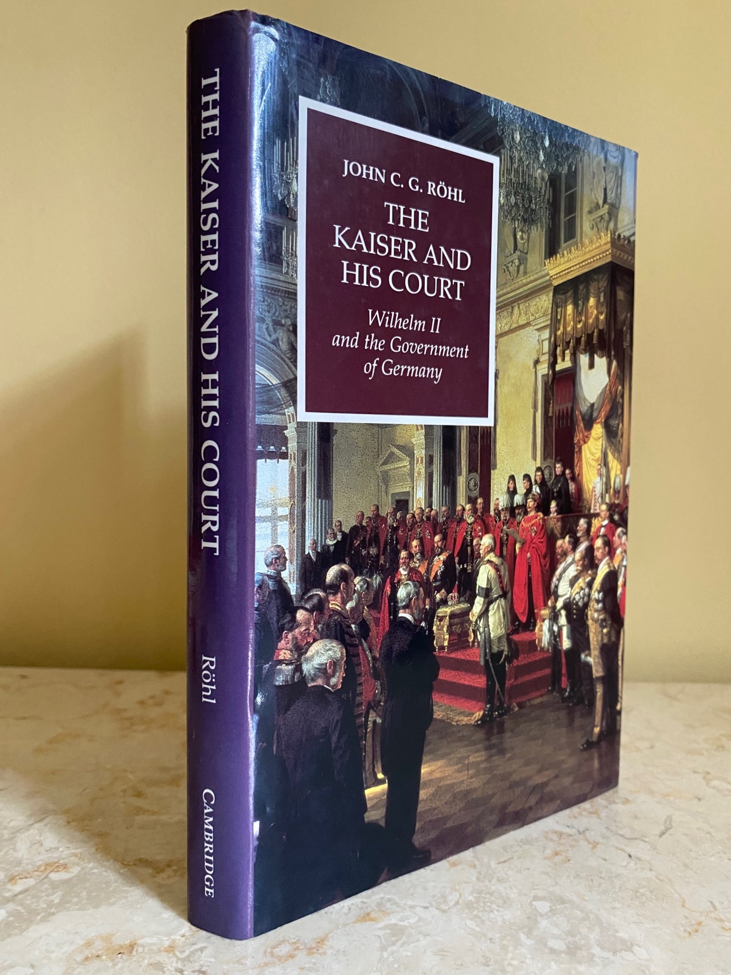 The Kaiser and His Court | Wilhelm II and the Government of Germany [Kaiser, Hof und Staat | Wilhelm II. und die Deutsche Polotik] Röhl, John C. G. [Wilhelm II] Translated from the German by Terence F. Cole (Book #ID 119559) Cambridge at the University Press First English Language Edition 1994. 1994. First UK edition hard back binding in publisher's original magenta cloth covered boards, blocked and lettered gilt back. 8vo. 9¼'' x 6¼''. Contains (xii), 275 pp with some monochrome illustrations. Fine condition book in near Fine condition dust wrapper. Member of the P.B.F.A. Click here to select books from the GERMANY [Language, History] Category |