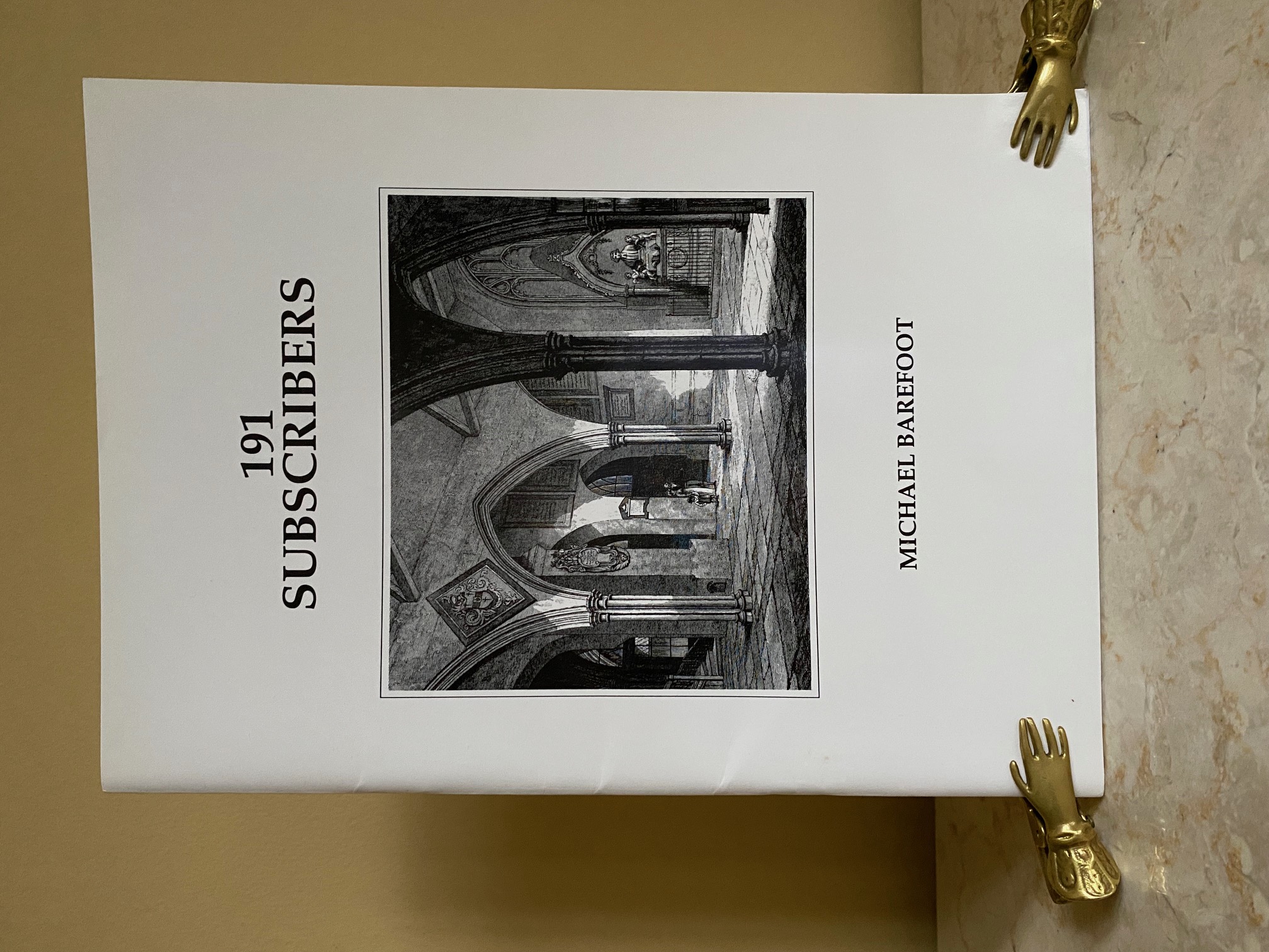 191 Subscribers | A Study of the Background to a Book Written by an Ancestor, William George Moss, Concerning St. Saviour's Church, the Forerunner of Southwark Cathedral, with Particular Reference to those who Subscribed to His Book and Including the Genealogy of this Moss Family. Barefoot, Michael [William George Moss 1792-1854] (Book #ID 119811) Published by Michael Barefoot Ltd., The Barn, Fore Street, Bovey Tracey, Devon First Edition 1994. 1994. First edition in publisher's original shiny white card wrap covers (soft back). 4to. 11¾'' x 8¼''. Contains 59 pp with monochrome illustrations throughout. Fine condition book in plain white paper dust wrapper. Member of the P.B.F.A. Click here to select books from the LONDON (Londinium) Category |
