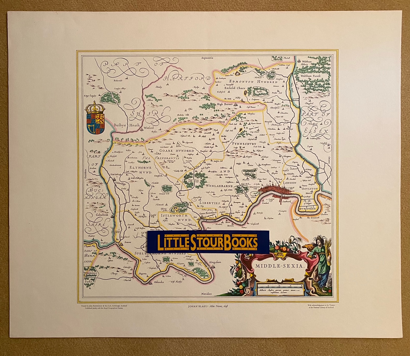 Middle-Sexia Map (Atlas Novus, 1648) | Middlesex. Blaeu, Johan and Willem Blaeu. (Book #ID 103860) Published Jointly with the Royal Geographical Society | Printed by John Bartholomew & Son Ltd., Edinburgh. Coloured facsimile reprint of the original authentic map of Middlesex. 19½'' x 24''. In Fine condition. Sent rolled in a tube. Member of the P.B.F.A. Click here to select books from the MIDDLESEX (Middleseaxan) Category |