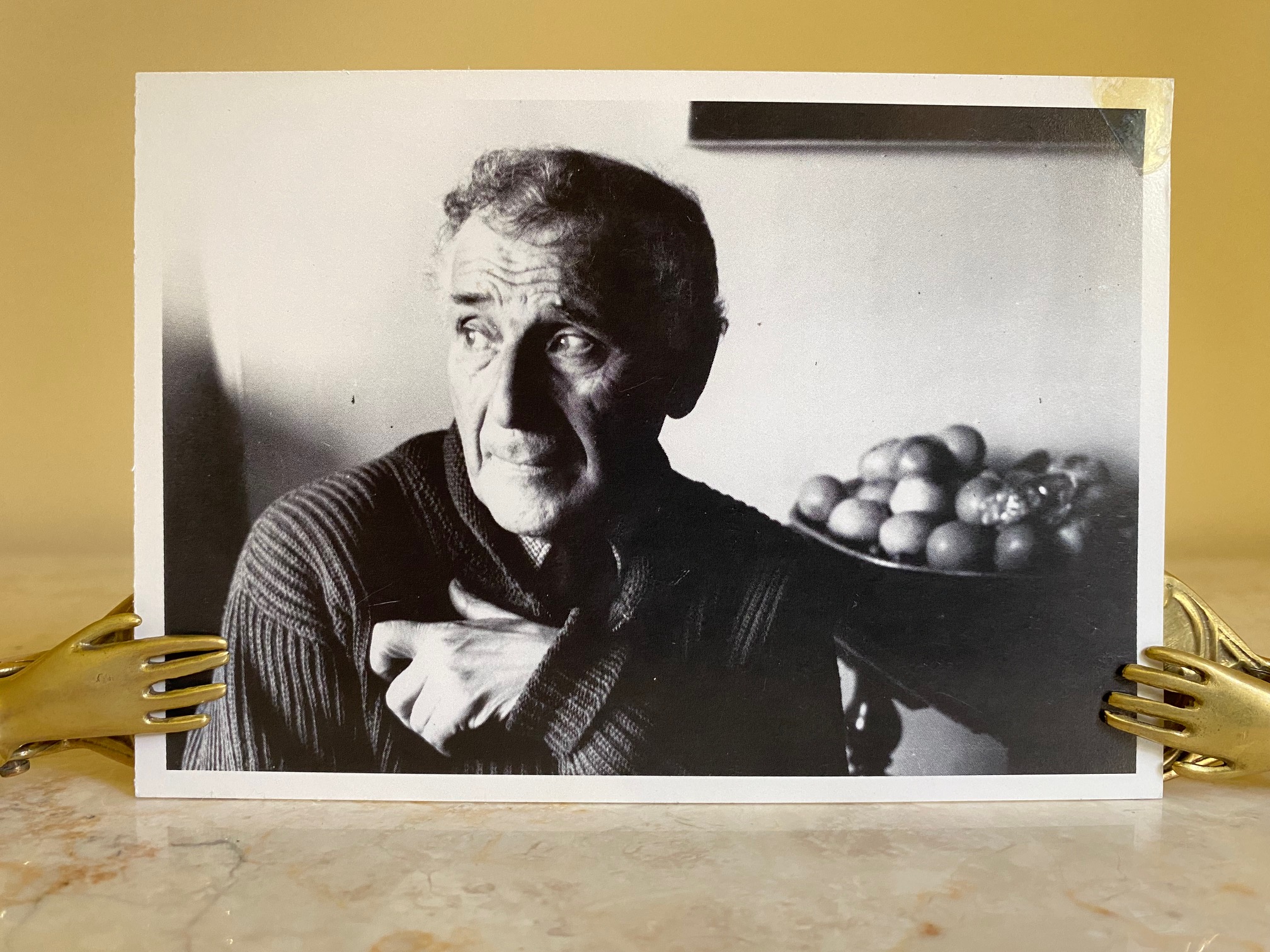 Marc Chagall head and shoulder photograph looking to his right in ribbed sweater | 1970 Monochrome Photographic Image | (Monika Kinley | Observed Series) Chagall, Marc (1887-1985) Photograph by Monika Kinley (Book #ID 118458) Published by Clouded Tiger Production circa 1970. 6'' x 4'' used monochrome post card of Marc Chagall. Member of the P.B.F.A. Click here to select books from the PHOTOGRAPHS Category |