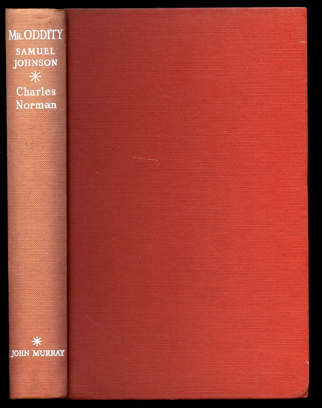 Mr. Oddity; Samuel Johnson Norman, Charles [Samuel Johnson] (Book #ID 36768) Published by John Murray, 50 Albemarle Street, London First Edition 1952. London 1952. First edition hard back binding in publisher's original strawberry cloth covers, white lettering to the spine. 8vo 9'' x 6'' 348 pp. Spine slightly sun faded, corners sharp and pointed and in Very Good condition, no dust wrapper. Member of the P.B.F.A. Click here to select books from the BIO (Résumé, Memoir) Category |