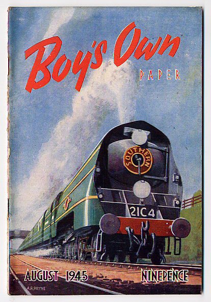 Seeds of Trouble [Part 2] to Boy's Own Paper Volume 67 No. 11 [August 1945] Captain W. E. Johns [Contributes:] (Book #ID 60326) Published by Lutterworth Periodicals Ltd, Reigate Road, Redhill, Surrey August 1945. Publisher's original stapled paper magazine with superb colour art work front cover and colour illustrated advertisement to the rear. 8vo. 7½'' x 5''. Contains 48 printed pages of text with monochrome illustrations, photographs and advertisements throughout. Nostalgic popular boys journal in Very Good clean condition with just a little rubbing of the paper to the spine, cover price 9d. Member of the P.B.F.A. Click here to select books from the BOY'S OWN PAPER Category |