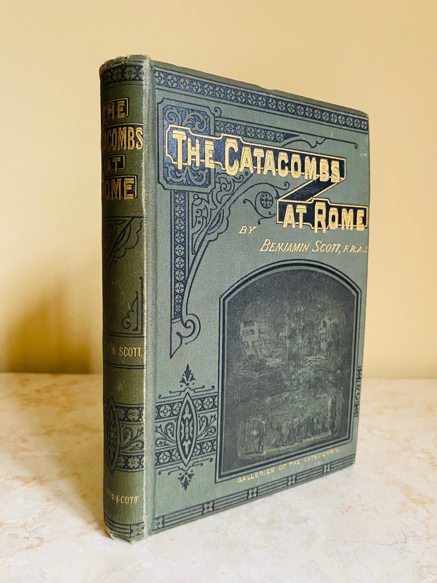 The Contents and Teachings of The Catacombs at Rome | A Vindication of Pure and Primitive Christianity; An Exposure of the Corruptions of Romanism: Derived from the Sepulchral Remains of the Early Christians Scott, Benjamin (Book #ID 119868) Published by Morgan and Scott, 12 Paternoster Buildings, London Fourth Edition not dated circa 1900. Fourth edition hard back binding in publisher's original decorated moss green cloth covered boards, blocked and lettered gilt back and front, all page edges gilt, black lining papers. 8vo. 7½'' x 5¼''. Contains (viii), 186 pp + ii pp catalogue. With monochrome text drawings and illustrations throughout. Ink name to the top of the title page and in Good condition. Member of the P.B.F.A. Click here to select books from the THEOLOGY & RELIGION Category |