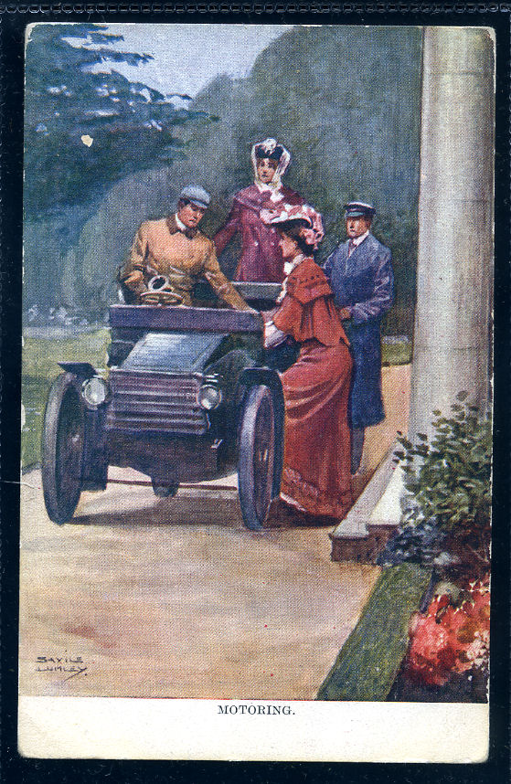 Illustration by Tony Gardiner [Tony Gardiner studied graphic design and illustration at the West Sussex College of Art & Crafts in Worthing during the late 1950s. It was during this period that his love of the motor car came to the fore, spurred on by the famous victory of the Ecurie Ecosse team of Jaguar D Types winning at Le Mans in 1957]. Cecil Kimber with Eddie and Elsie 'Bill' Wisdom.