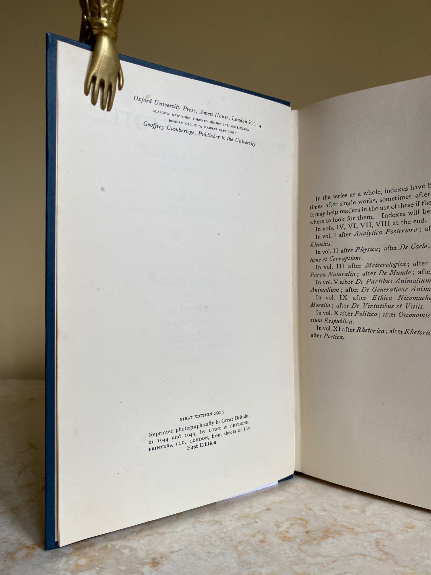 Ross, W. D. | St. George Stock | J. Solomon [Aristotle, Greek philosopher and scientist born in the Macedonian city of Stagirus, in 384 BCE]. Translated into English under the Editorship of W. D. Ross, St. George Stock and J. Solomon.