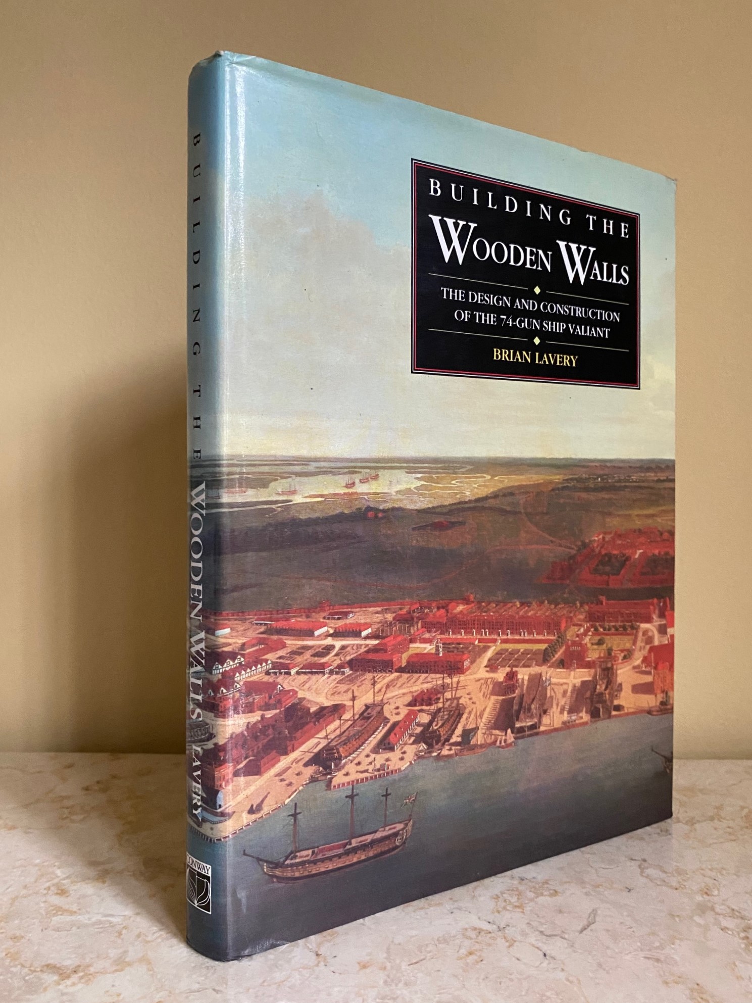 First edition hard back binding in publisher's original scarlet cloth covered boards, blocked and lettered gilt back. 4to. 11'' x 8''. Highly detailed account of the process of construction of a 74 gun ship of the line, the Valiant. She was inspired by the large French 74, The Invincible, which surrendered to the British in 1747 and which had come to be regarded during her years in Royal Navy service as the best ship in her class, superior to anything built in the English dockyards. The Valiant, built at Chatham, and the Triumph, built at Woolwich, were based upon her lines. Contains 206 pp with monochrome illustrations and photographs throughout. Fine condition book in Very Good condition dust wrapper with small rub to the top front corner, not price clipped, being £25.00 in 1991. Member of the P.B.F.A.