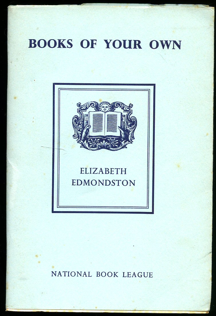 Books of Your Own; Suggestions for Running a Personal Library Edmondston, Elizabeth (Book #ID 59943) Published by Cambridge University Press for National Book League 1951. London 1951. Publisher's original white stapled card wrap covers. 8vo. 7'' x 5½''. Contains 44 printed pages of text. A little weeping of the staple, foxing to the upper, lower, fore edges and end papers. Very Good condition book in Very Good condition blue dust wrapper. Member of the P.B.F.A. Click here to select books from the BOOKS (Binding, Collecting, Printing, Paper) Category |