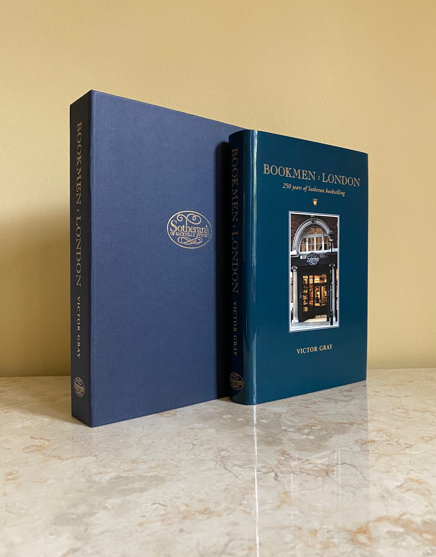 Bookmen : London | 250 Years of Sotheran Bookselling [Signed] Gray, Victor [Designed by Leo Maggs] (Book #ID 106084) Published by Henry Sotheran Ltd., 2-5 Sackville Street, London First Edition 2011. 2011. First edition hard back binding in publisher's original blue cloth effect covered boards, gilt back, genealogy chart of the Sotheran's to the front end papers, street map to the rear end papers. 8vo. 9½'' x 6½''. Contains (xvii)-1, 446 pp with monochrome archive photographs and colour plates throughout. Fine condition book in Fine condition dust wrapper. Hand written number 17 of 250 Limited Edition copies SIGNED by the author to the title 'Victor Gray.' Housed in original blue cloth effect clam shell box lined in blue velvet, blue silk ribbon. Member of the P.B.F.A. ISBN 9780950821955 Click here to select books from the BOOKS (Binding, Collecting, Printing, Paper) Category |