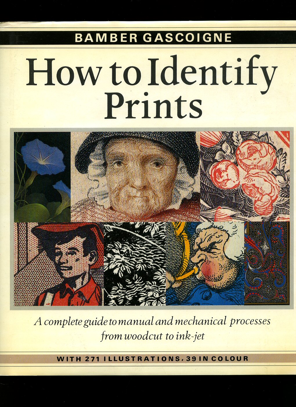 How to Identify Prints; A Complete Guide to Manual and Mechanical Processes from Woodcut to Inkjet Gascoigne, Bamber (Book #ID 54976) Published by Thames and Hudson, 30 Bloomsbury Street, London First Edition 1986. London 1986. First edition hard back binding in publisher's original coffee cloth covers, gilt title and author lettering to the spine with gilt vignette of two dolphins to the upper panel. Folio. 11'' x 8½''. ISBN 050023454X. Contains 207 printed pages of text with colour and monochrome illustrations throughout, coffee end papers. Fine condition book, in Fine condition colour illustrated dust wrapper. Dust wrapper supplied in archive acetate film protection, this protects and prolongs the life of the paper, it is not adhered to the book or to the dust wrapper. Member of the P.B.F.A. Click here to select books from the BOOKS (Binding, Collecting, Printing, Paper) Category |