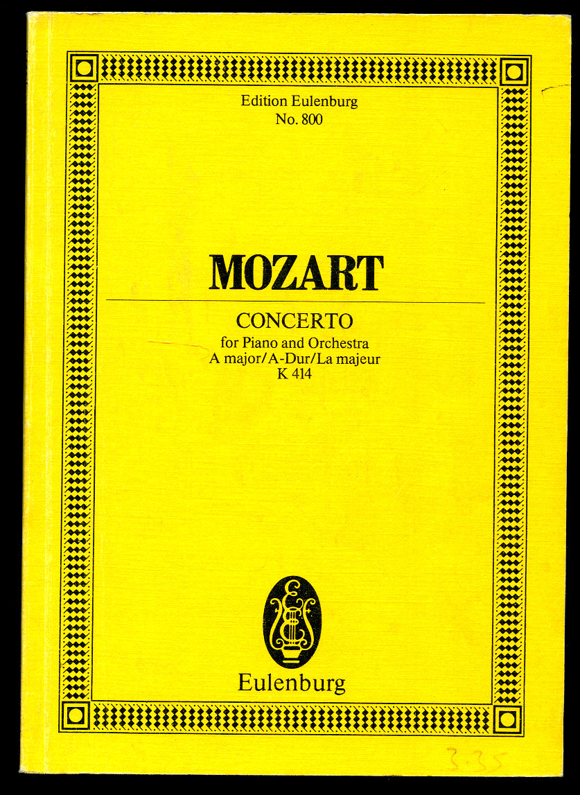 Mozart Concerto A major for Piano and Orchestra K414 | Edited by Paul Badura-Skoda | Full Miniature Score | Eulenburg Study Score Edition No. 800 Mozart, Wolfgang Amadeus (1756-1791) Edited by Paul Badura-Skoda (Book #ID 114273) Published by Ernst Eulenburg & Co. Ltd., 48 Great Marlborough Street, London | Zürich GmbH | Mainz GmbH | New York. Publisher's original classic banana yellow and black livery stiff card wrap covers [soft back]. 8vo. 7½'' x 5¼''. Contains 95 pp score. In Very Good condition, no dust wrapper as issued. Member of the P.B.F.A. Click here to select books from the MUSIC [Classical] Category |