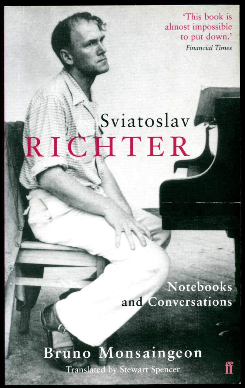 Sviatoslav Richter | Notebooks and Conversations Monsaingeon, Bruno [Translated by Stewart Spencer] Sviatoslav Teofilovich Richter (Russian translation Sviatosláv Teofílovich Ríkhter (March 20 [O.S. March 7] 1915 - August 1, 1997) was a Soviet pianist of Russian-German origin, who is generally regarded as one of the greatest pianists of the 20th century. He is known for the depth of his interpretations, his virtuoso technique, and his vast repertoire]. (Book #ID 97397) Published by Faber and Faber Ltd., 3 Queen Square, London First Paperback Edition 2005. 2005. First edition in publisher's original illustrated stiff card wrap covers [soft back]. 8vo. 8½'' x 5¼''. 'To Richter (no first name necessary), warm greetings to the best pianist in the Soviet Union - indeed in the whole world.' Prokofiev. Throughout a life dedicated to music, Richter maintained a stubborn silence about his own ideals and aspirations. Here at last he opens up his heart in these exceptional interviews with Bruno Monsaingeon, who became close to Richter not long before the pianist's death in 1995. These conversations take us on a journey which begins with Richter's childhood memories, follows his early career and his development into 'an artist of the people', and finally charts his rise to international acclaim. Richter's personal notebooks, kept for nearly thirty years, constitute an unparalleled witness to the music of our time. The pianist writes with precision, humour and clarity and is uninhibitedly himself. These are the private thoughts of a nonconformist, one of the greatest performers of the century, yet one whose life was inextricably bound to the history of the USSR. Contains [xxxii] 432 printed pages of text with monochrome photographs throughout. Slight age tanning to the closed page edges and in near Fine condition, no dust wrapper as issued. Member of the P.B.F.A. ISBN 057122511X Click here to select books from the MUSIC [Classical] Category |