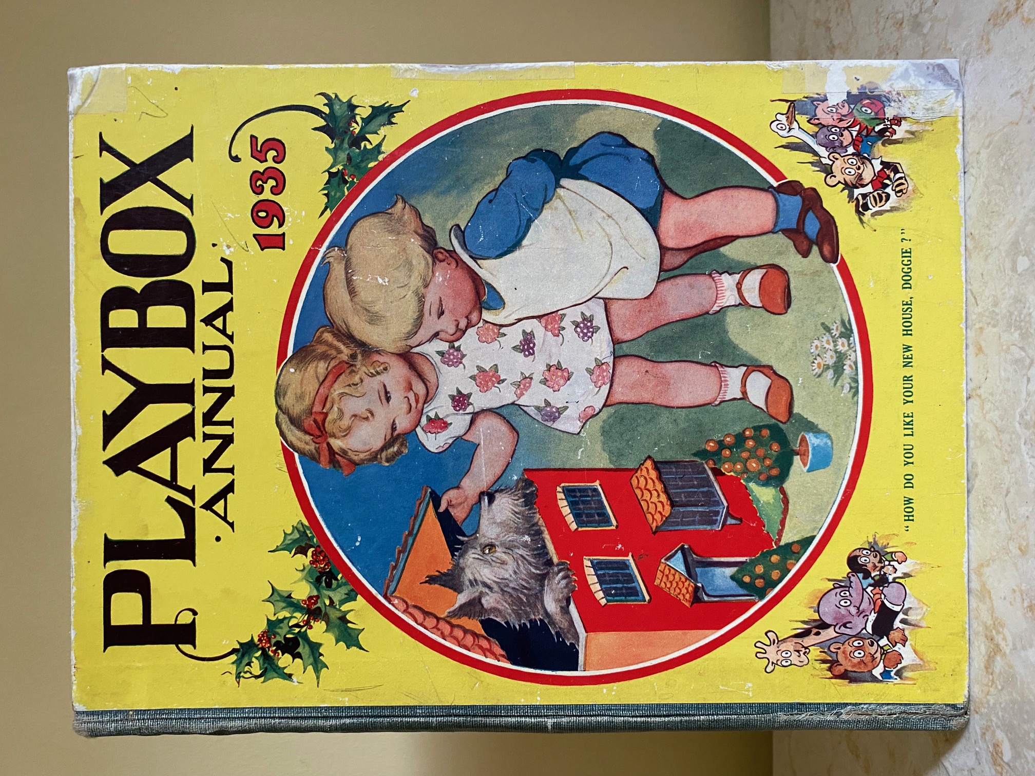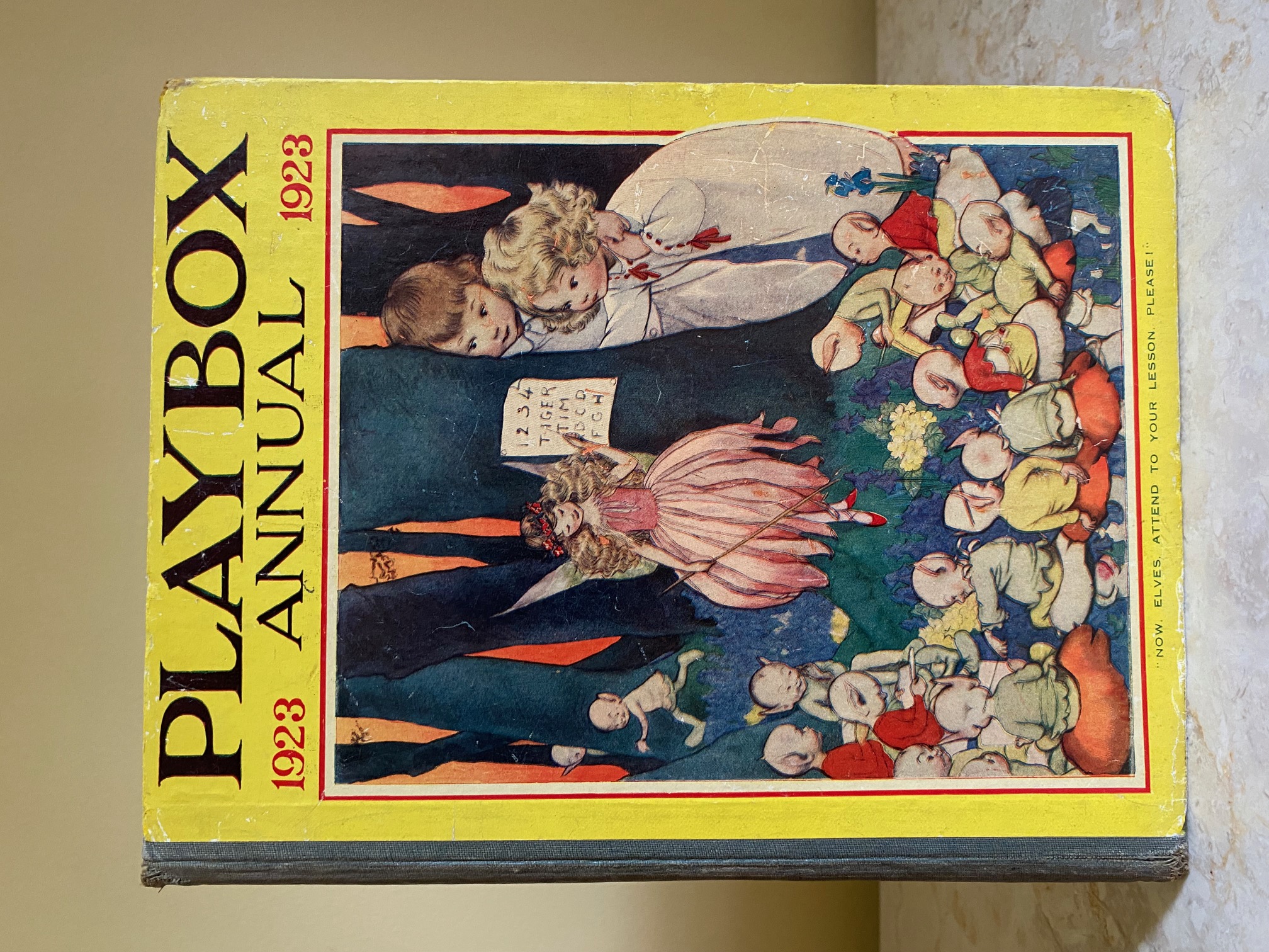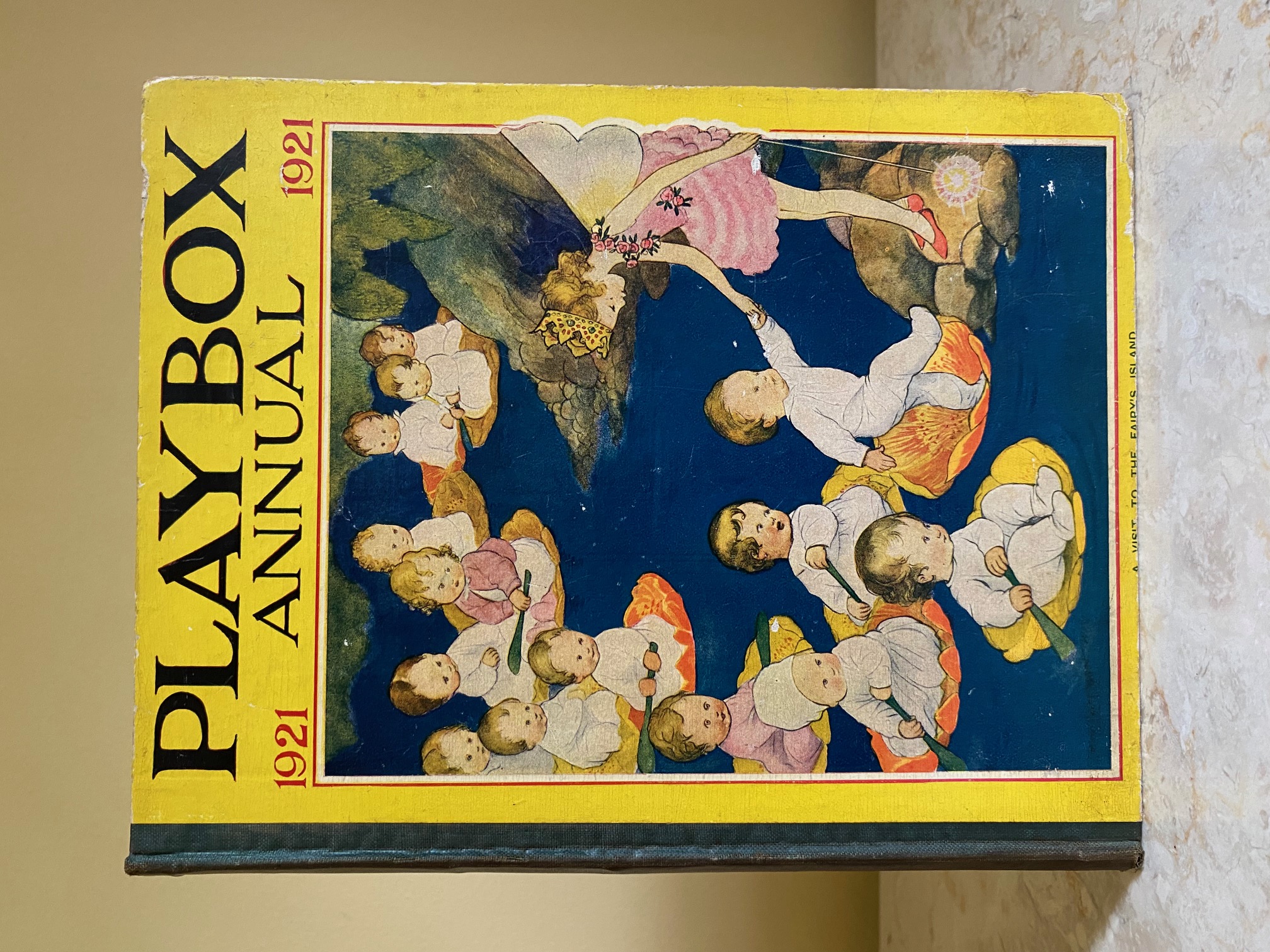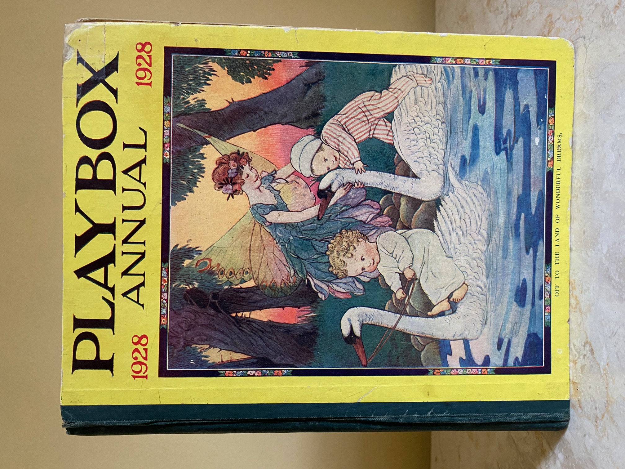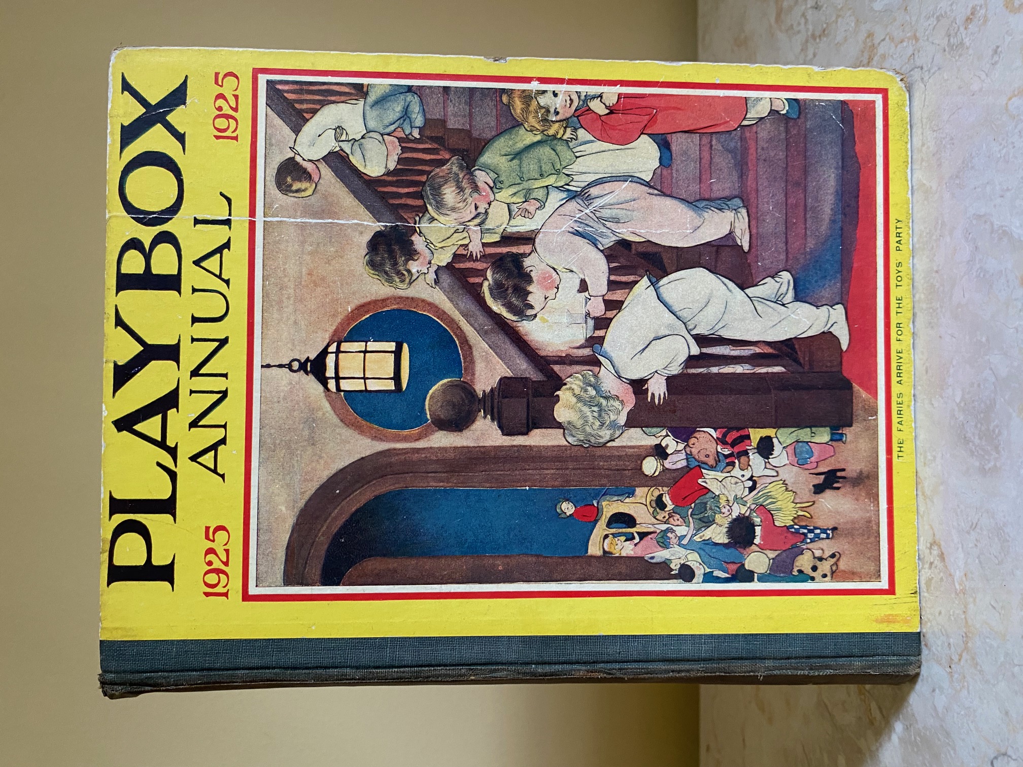 First edition hard back binding in publisher's original colour illustrated paper covered boards, emerald green thin linen cloth spine, Pears Soap advertisement to the rear cover. Quarto. 9½'' x 7¾''. Contains 208 pp with monochrome, single and twin colour illustrations and 4 full-page colour plates throughout, one of which is frayed. Ink message to the front free end paper, corners rubbed, hinges cracked and repaired. Playbox 1st series had 2 issues in 1898. Playbox 2nd series ran from 1905-1913. Playbox 3rd series (merged with Jack and Jill) ran from 1925-1955. The 2nd and 3rd series realised 48 annuals from 1909 to 1956. Member of the P.B.F.A.