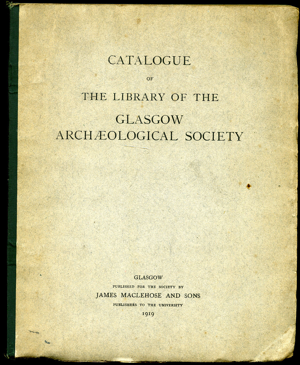 Publisher's original plain grey card wrap covers [soft back], dark grey binders tape down the spine. 8vo. 9'' x 7''. Contains pp 419-584 with 2 text illustrations and 2 folding plans: 'Ground Plan of Glasgow Cathedral as of Old', and 'Sketch Plan Showing Position of Polmadie Mill and Polmadie Loan'. Soiling to the edges of the covers, contents in Very Good clean condition, never opened page tops not slit. Separate Title Pages Contents, and Index of Volume I dated 1891. Member of the P.B.F.A.