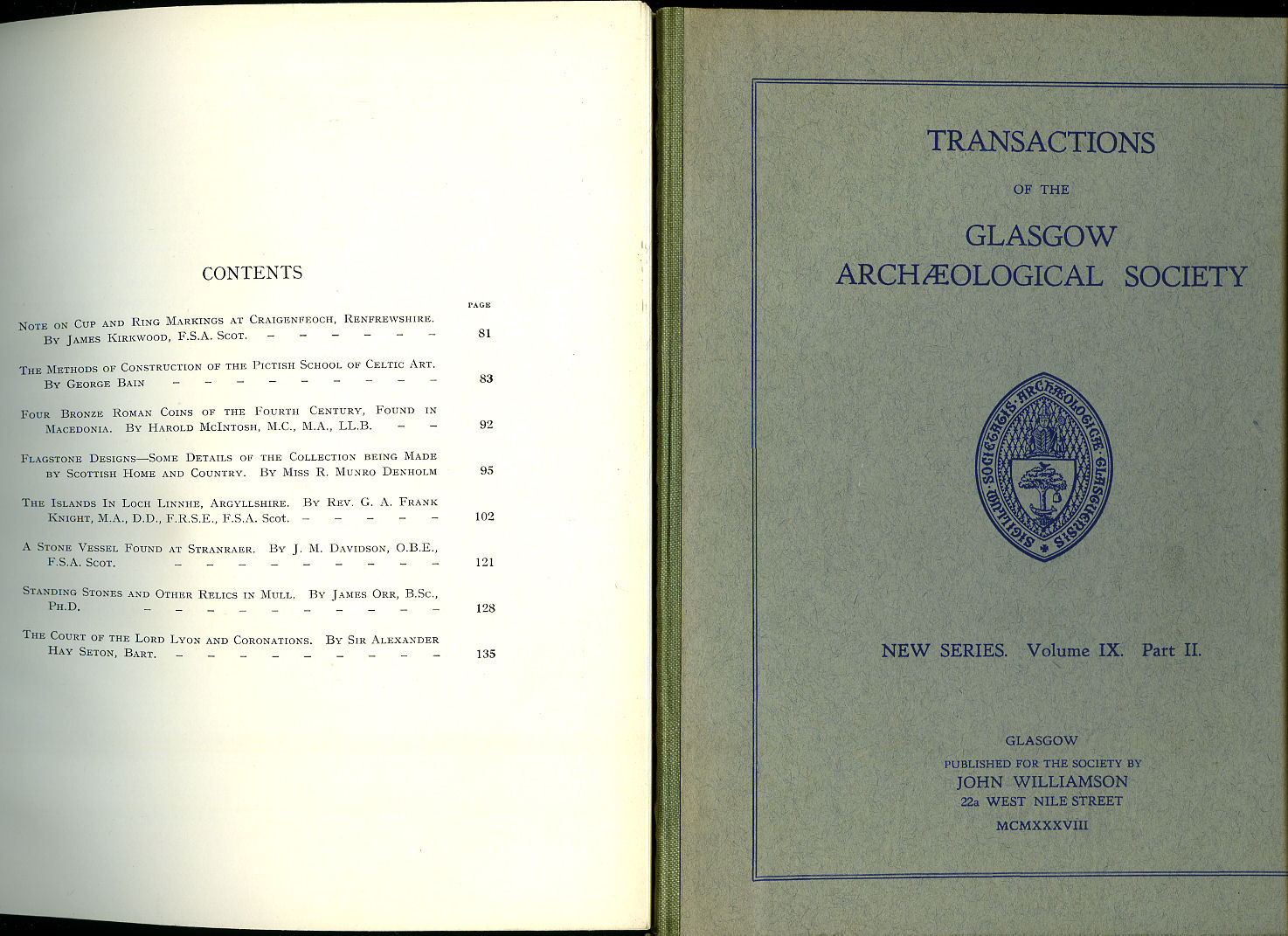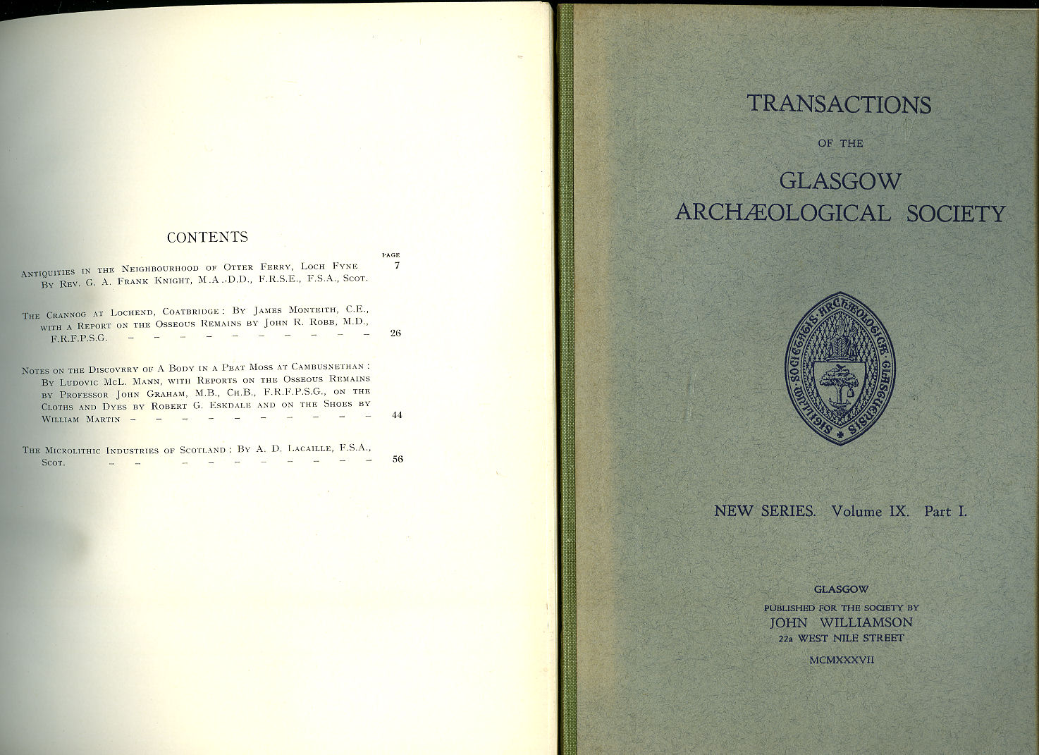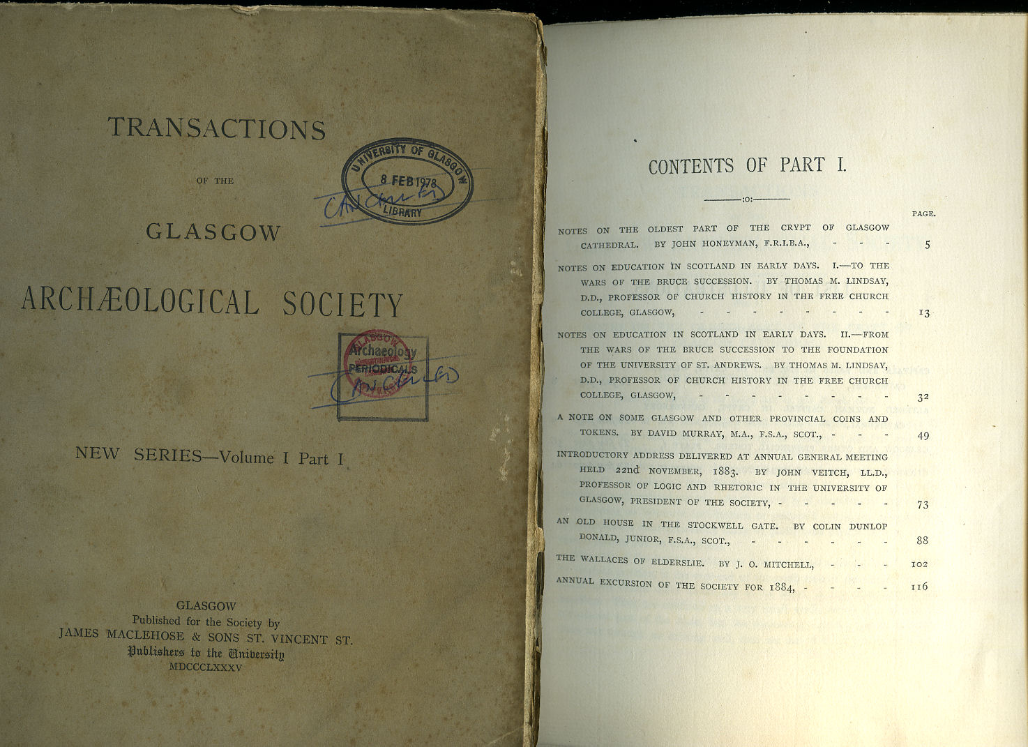 Transactions of the Glasgow Archaeological Society | Volume I - Part IV | 1890 (New Series) + Title Pages Contents, and Index of Volume I (1891)