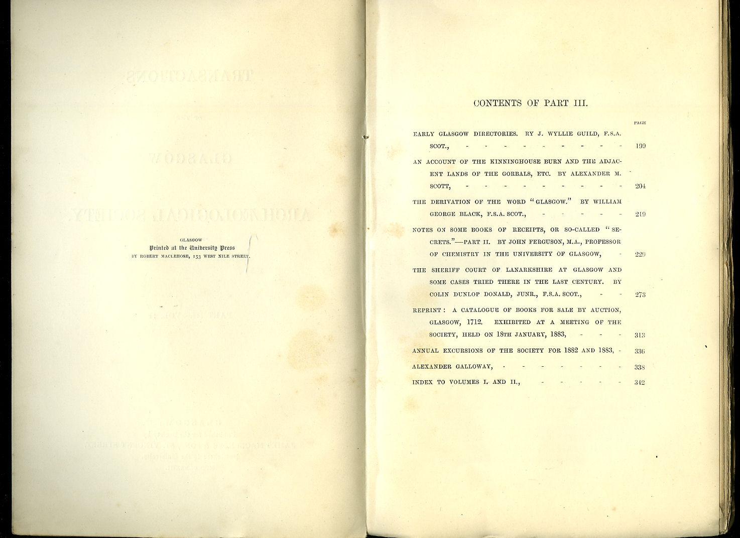 Published for the Glasgow Archaeological Society by James Maclehose and Sons, St. Vincent Street, Glasgow 1890 + 1891. 1890 - 1891.