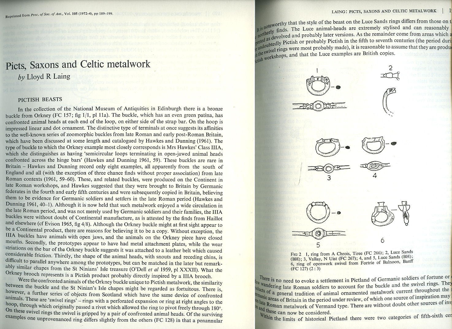 The Proceedings of the Society of Antiquaries of Scotland 1972 - 74 | Volume 105 | Offprint from P.S.A.S. | Picts, Saxons and Celtic Metalwork