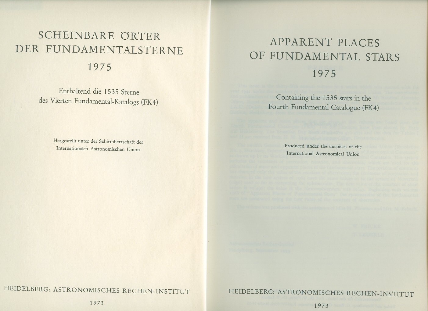 Published by Astronomisches Rechen-Institut, Heidelberg, Germany First Edition 1973. Germany 1973.