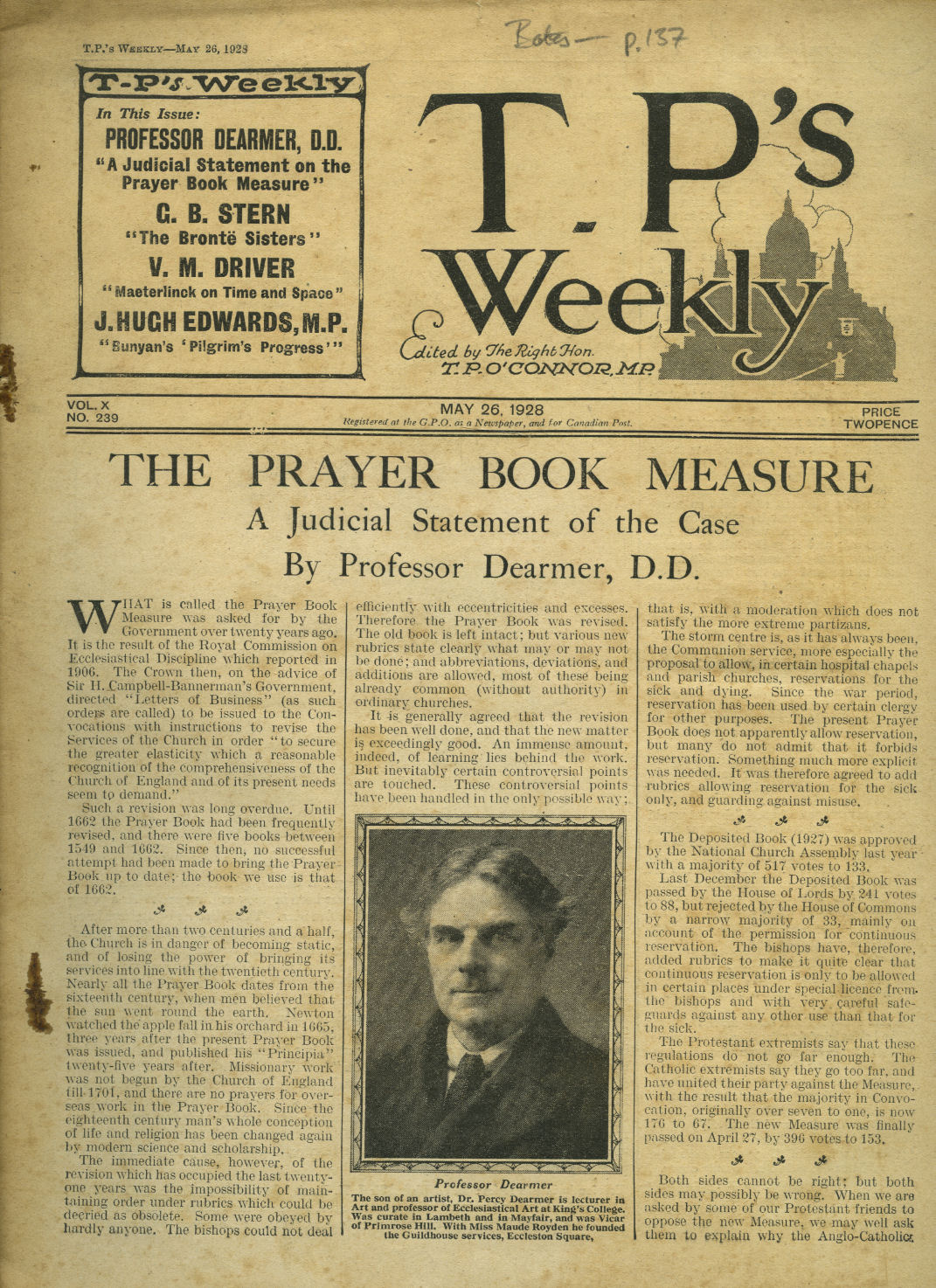 Thomas Power O'Connor (5 October 1848 - 18 November 1929), known as T. P. O'Connor and occasionally as Tay Pay (mimicking his own pronunciation of the initials T. P.), was a journalist, an Irish nationalist political figure, and a member of parliament (MP) in the House of Commons of the United Kingdom of Great Britain and Ireland for nearly fifty years. O'Connor founded and was the first editor of several newspapers and journals: The Star (1887), the Weekly Sun (1891), The Sun (1893), M.A.P. and T.P.'s Weekly (1902). Includes Articles and Stories by: H. E. Bates; John Masefield [Drawn by Joseph Simpson];