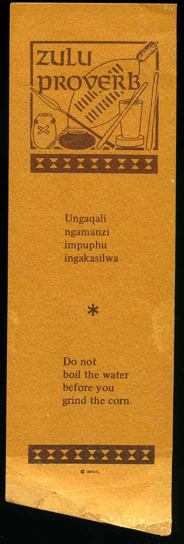Original Vintage Bookmark | Zulu Proverb 'Ungaqali Ngamanzi Impuphu Ingakasilwa' (Do Not Boil the Water Before You Grind the Corn)