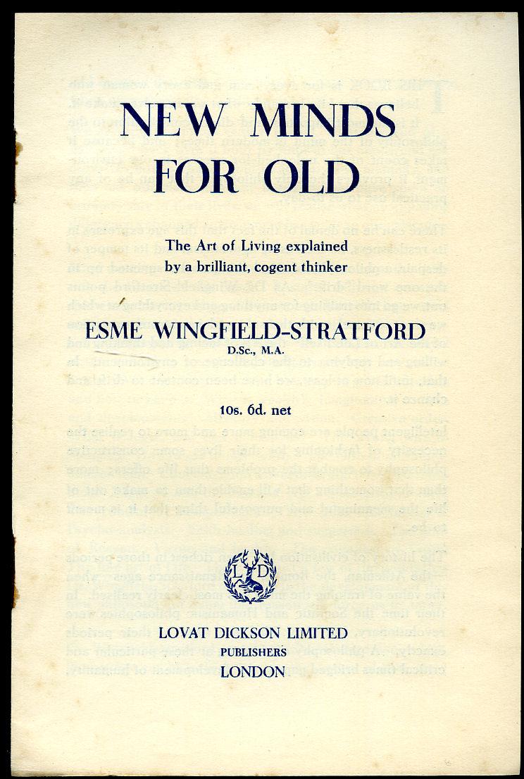Wingfield-Stratford, Esme [Esmé Cecil Wingfield-Stratford (20 September 1882 - 20 February 1971) was an English historian, writer, mind-trainer, outdoorsman, patriot and ruralist].