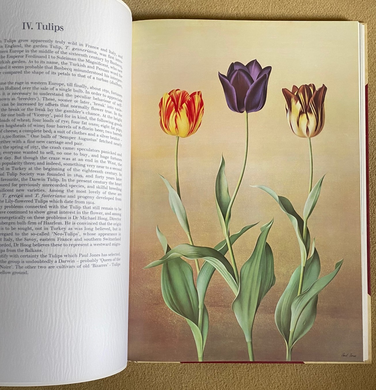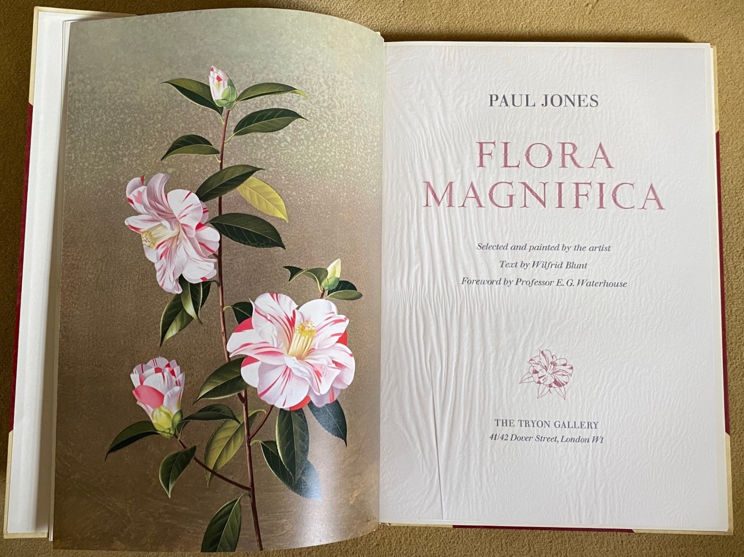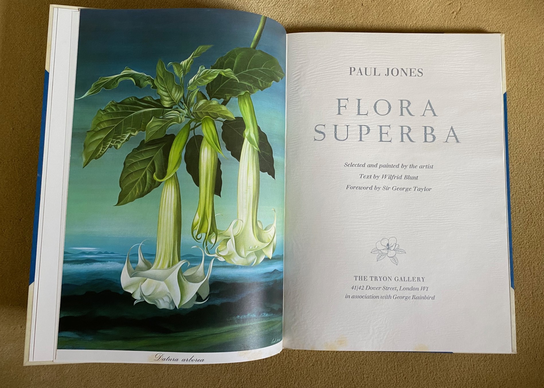 First edition hard back binding in publisher's original half vellum and Persian blue buckram covered boards by Zaehnsdorf of London, gilt title lettering to the spine, top edge gilt, gilt floral vignette to the front cover. Elephant folio. 21¼'' x 15''. Hand written number 174 of 406 Limited Edition copies SIGNED by the artist to the limitation leaf 'Paul Jones'. Contains [48] pp, with 16 superb full-page tissue-guarded colour plates printed on matt coated cartridge paper with detailed description opposite each plate. Fine condition book in matching cloth slip case with white mottling to the cloth. In publisher's original card board box with printed white address label to one side being sent directly from Tryon Gallery to London art dealer 'Michael Tollemache, Tollemache Hall, Offton, Ipswich, Suffolk', the gentleman who paid £7.3 million for John James Audubon's famous book 'The Birds of America'. Heavy oversized volume weighing 6 kg, extra postage will be requested over and above our default setting for destinations outside of the UK. Member of the P.B.F.A.