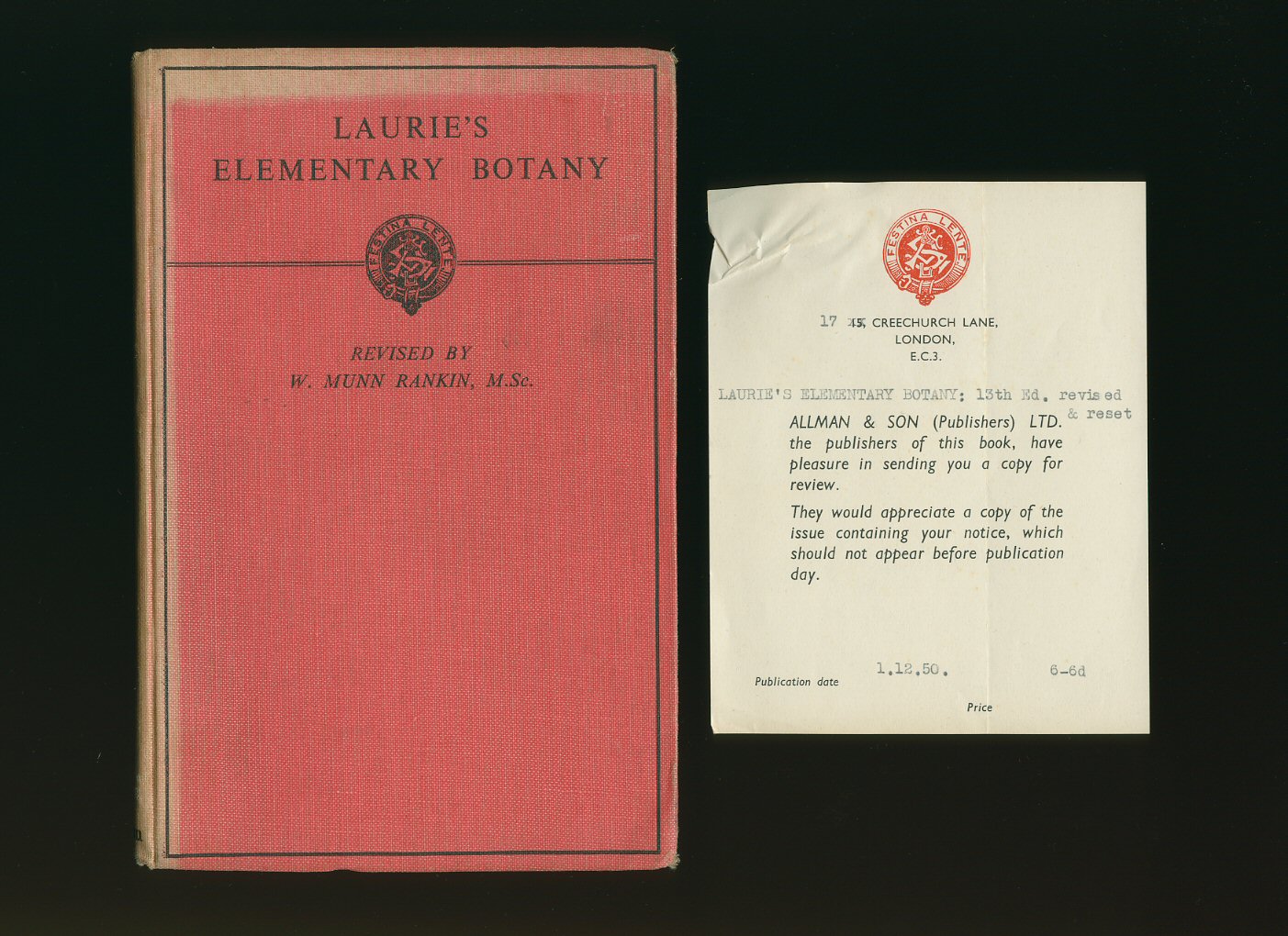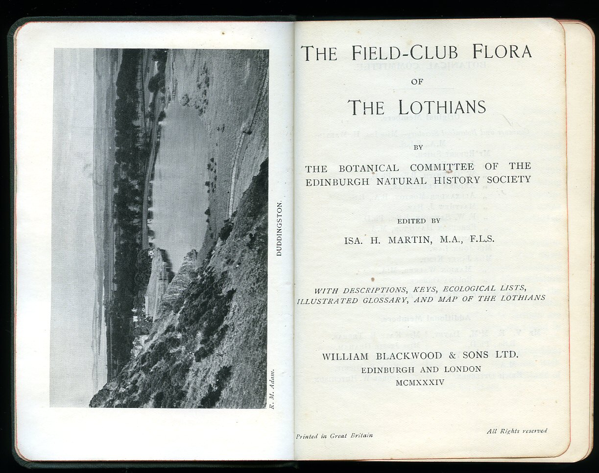 First edition hard back binding in publisher's original forest green cloth covered boards, blocked and lettered black back. 8vo. 6½'' x 4¼''. Contains [xx] 318 printed pages of text with descriptions, keys, ecological lists, illustrated glossary, and a fold-out map of the Lothian's to the rear. Spine sun faded, else in Very Good condition, no dust wrapper. Member of the P.B.F.A.