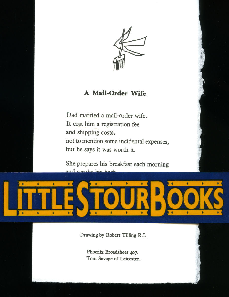 Phoenix Broadsheet Number 407. 7'' x 4''. Cream paper, black lettering, small drawing by Robert Tilling. In Fine condition. Member of the P.B.F.A.