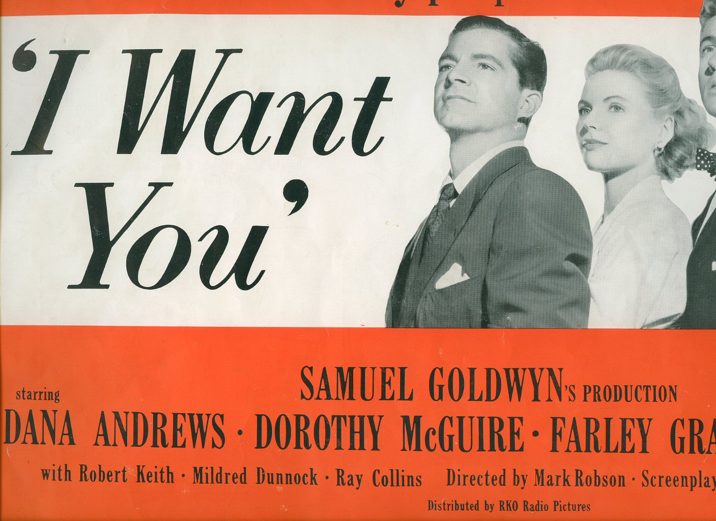 I Want You Starring: Dana Andrews, Dorothy McGuire, Farley Granger, Peggy Dow with Robert Keith, Mildred Dunnock, Ray Collins