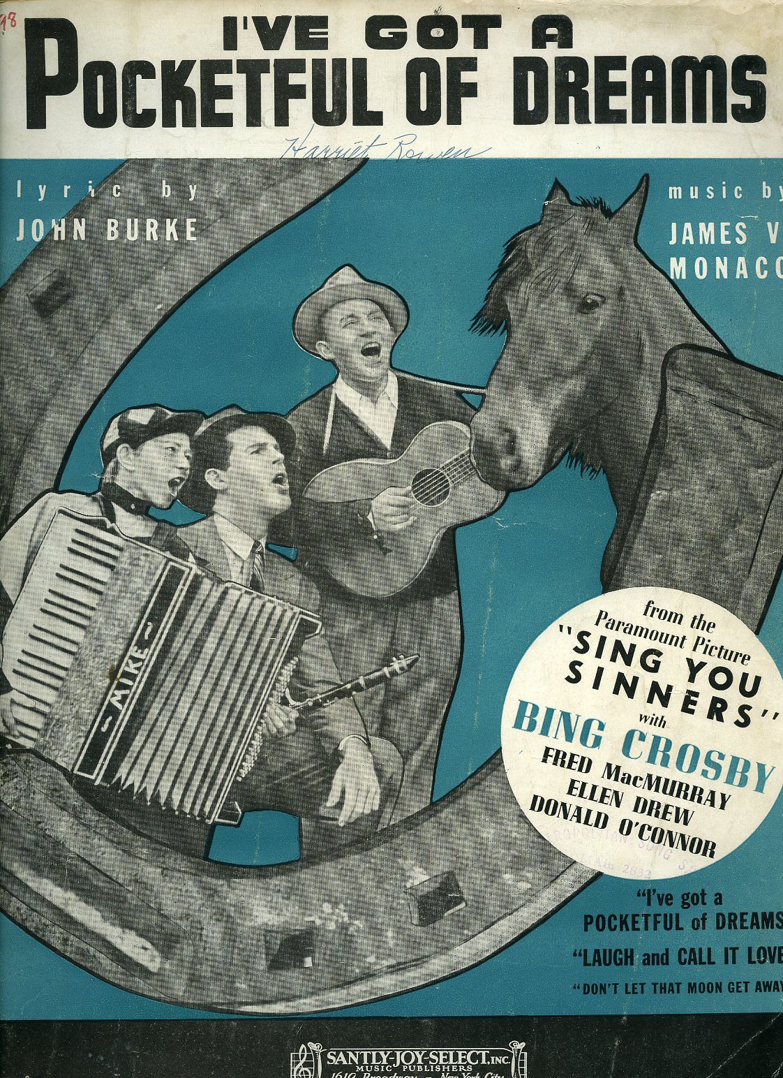 I've Got A Pocketful Of Dreams [Vintage Piano Sheet Music] From the Paramount Picture ''Sing You Sinners'' Starring Bing Crosby, Fred MacMurray, Ellen Drew, and Donald O'Connor