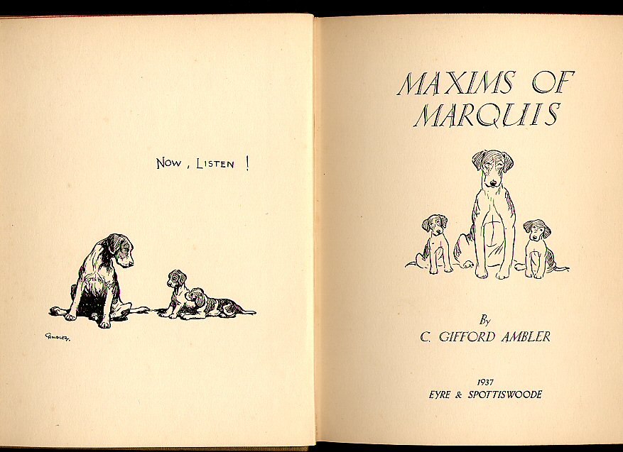 First edition hard back binding in publisher's original stone cloth covers, red title and author lettering to the spine with red drawing of a dog's head to the upper panel, red dyed upper edges. 8vo. 8½'' x 6''. Contains 111 printed pages of text with monochrome drawings throughout. Shallow rubs to the spine ends and gutters, age tanning to the closed fore edges and end papers, pencilled name to the half-title page and in near Very Good condition, no dust wrapper. Member of the P.B.F.A.