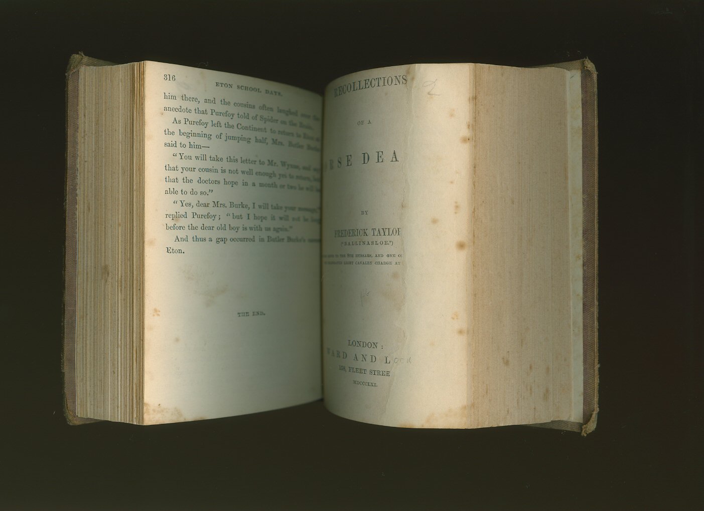 Third edition revised throughout and greatly enlarged hard back binding in deep burgundy leather bound by Spottiswoode and Co. Ltd., rebacked preserving the parts of the original gilt labels, Eton College crest and parallel lines to both the front and rear covers, all page edges gilt, marble paper end papers. Thick 8vo. 9'' x 6¼''. Contains [xxv] + 3; 640 pages with illustrations by P. H. Delamotte, a steel engraving by C. H. Jeens, etc. 4 colour plates and many wood engravings to the text, includes a colour fold out plan of Eton, errata leaf. Sir Henry Churchill Maxwell Lyte was educated at Eton 1861-1865 (The Reverend Francis Furse Vidal's House). Two inscriptions to the second front free end paper Firstly: 'Hilary Philip Chadwyck-Healey from Francis Hay Rawlins, Eton 1906', secondly ' This book - together with a silver napkin ring - was presented to James John Harper Clark by the Chadwyck-Healey family in gratitude for his friendship with Hilary Philip Chadwyck-Healey who died 30th March 1976. John Chadwyck-Healey, 30th July 1976.' Member of the P.B.F.A.