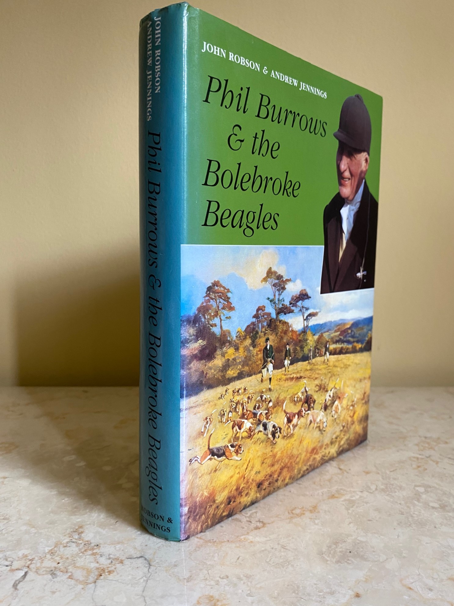 First edition hard back binding in publisher's original jade green paper covered boards, blocked and lettered gilt back, end paper maps. 8vo. 9'' x 6½''. The story of Phil Burrows and the Bolebroke, kennelled at Crowdleham, Kemsing, Kent. Contains 320 pp with colour paintings, monochrome photographs and illustrations, cartoon illustrations throughout. Fine condition book in Very Good condition dust wrapper with very slight sun fading down the spine. Dust wrapper supplied in archive acetate film protection. Member of the P.B.F.A.