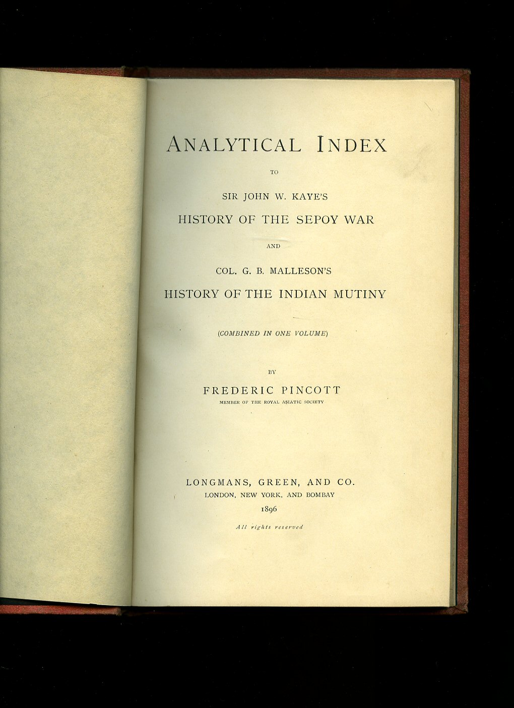 A History of the Sepoy War in India 1857-1858 [3 Volumes] History of the Indian Mutiny 1857-1858 Commencing From the Close of the Second Volume of Sir John W. Kaye's History of the Sepoy War [3 Volumes] Analytical Index to Sir John W. Kaye's History of the Sepoy War and Colonel G. B. Malleson's History of the Indian Mutiny [7 Volumes in Total]