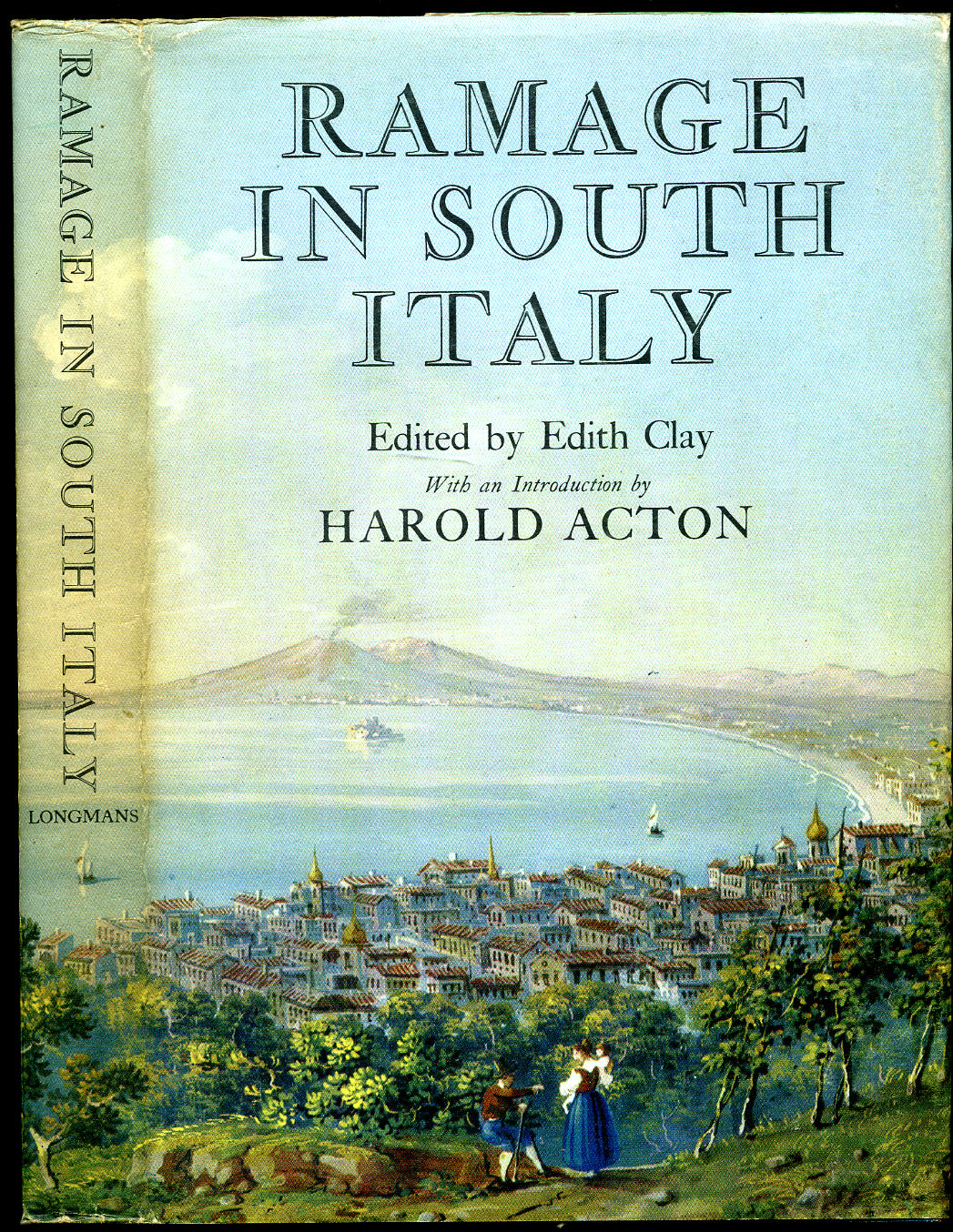 First edition hard back binding in publisher's original cornflower blue cloth covers, gilt and blue title and author block lettering to the spine. 8vo. 9'' x 6''. Published originally in 1868 recounting Ramage's unaccompanied tour of Southern Italy in 1828. Contains [xxi] 232 printed pages of text with monochrome illustrations throughout. Henry Sotheran Booksellers ticket inside. Near Fine condition book in Very Good condition dust wrapper with minor rubs to the tips and corners, not price clipped, 45/-. Dust wrapper supplied in archive acetate film protection, it does not adhere to the book or to the dust wrapper. Member of the P.B.F.A.