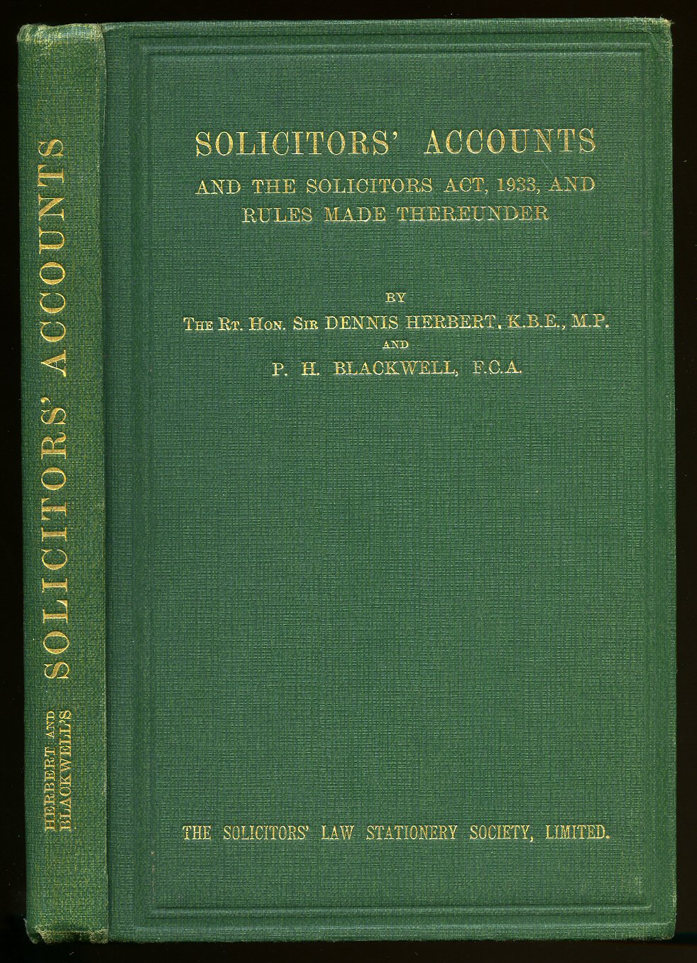 Herbert, The Rt. Hon. Sir Dennis and P. H. Blackwell [Foreword by Lord Plender]