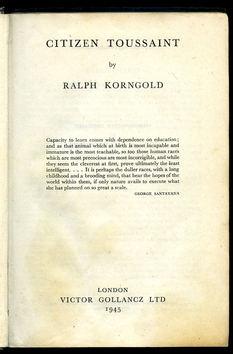 First edition hard back binding in publisher's original green cloth covers, black title and author lettering to the spine and the upper panel. 8vo. 7½'' x 5¼''. Contains 254 printed pages of text. Age darkened spine, mottling to the margins of the front panel, shallow rubs to the spine ends and corners, ink lending library dates from 1934 to 1936 stamped to the front paste down, foxing to the page edges, and in Good condition, no dust wrapper. Member of the P.B.F.A.