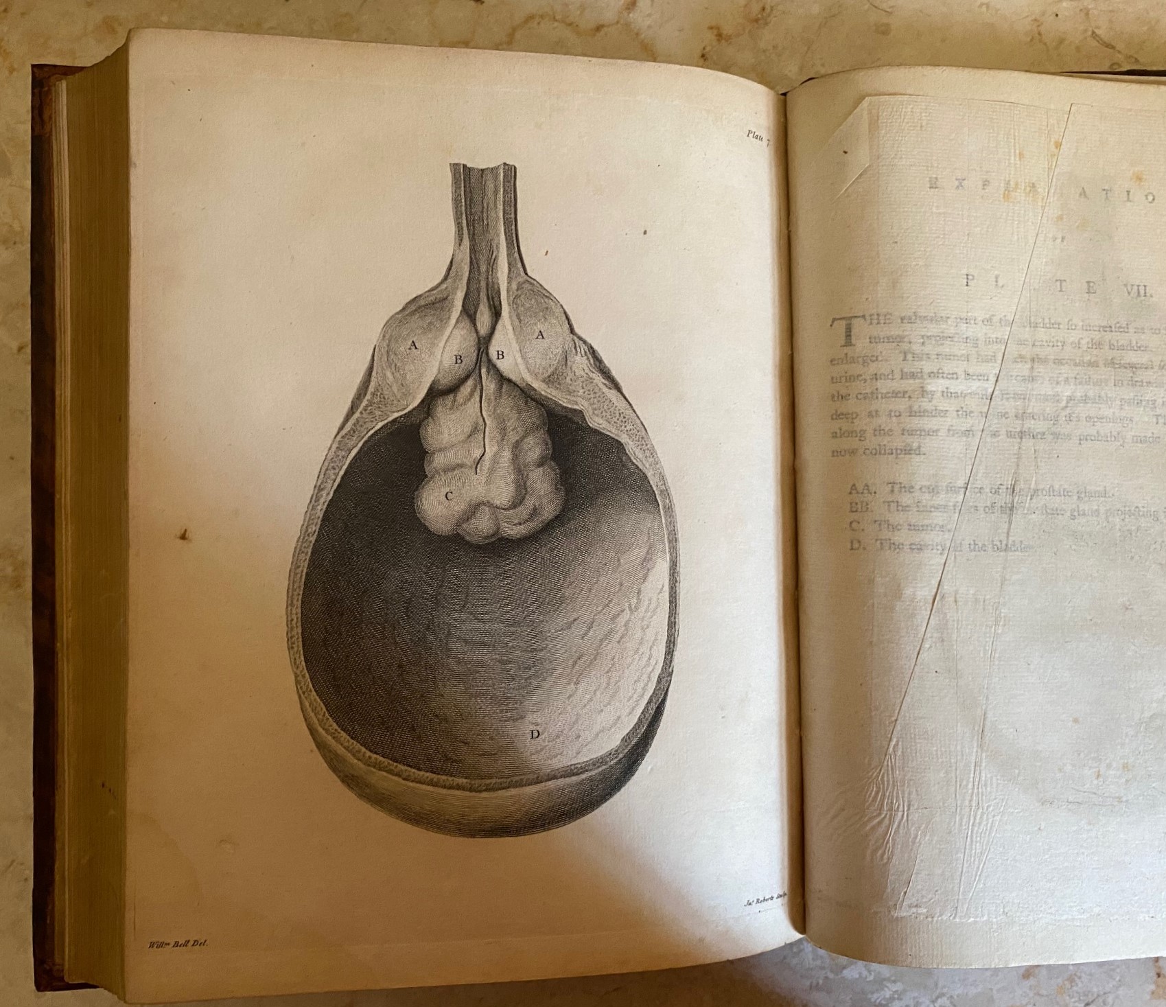 First edition hard back binding in contemporary full tan tree calf covered boards, the spine divided into six panels, gilt and burgundy morocco lettering label in the second, gilt tools to the others, front and back parallel twin gilt lines with small centre detail to the perimeters. Quarto. 10½'' x 8¾''. Contains (viii), 398 pp with 7 full-page tissue-guarded copper plate engravings, each with leaf of explanatory text. A little staining from the leather turn-in's front and back, without any age toning to the paper beyond the original end papers and without any foxing to the text block. Lovely copy. This volume, along with other books of the period, came from the family estate of Sir Frederick Treves (15 February 1853 - 7 December 1923) a prominent British surgeon, and an expert in anatomy. Member of the P.B.F.A.