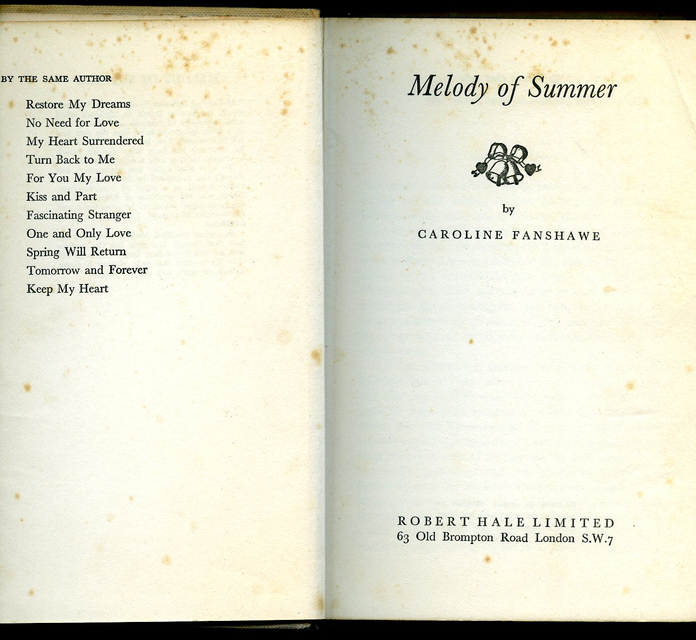 First edition hard back binding in publisher's original cerise cloth covers, silver title and author lettering to the spine and to the front cover. 8vo. 7½'' x 5¼''. Contains 163 printed pages of text. In very near Fine condition, no dust wrapper. SIGNED by the author to the front free end paper 'To Andrew Downie (Julian Bromley - lead character in the play), with love and good wishes from Eleanor. To commemorate the First Night of 'The Two Bouquets', May 12th 1953 - Coronation Year'. Member of the P.B.F.A.