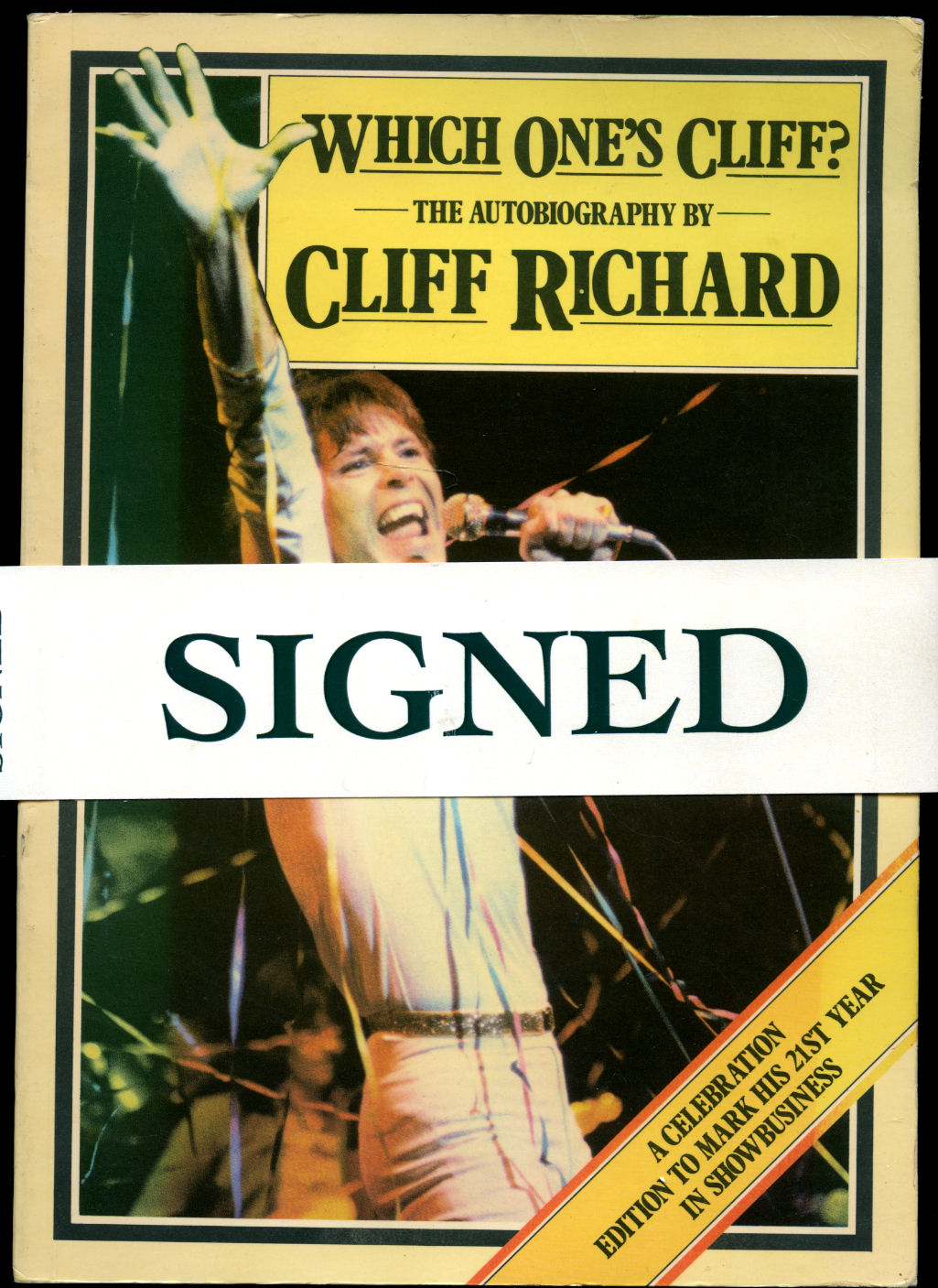 First edition in publisher's original colour illustrated stiff card wrap covers [soft back]. 8vo. 9'' x 6¼''. Contains 190 printed pages of text with monochrome and colour archive photographs throughout. Top front corner turned up and in Very Good clean condition, no dust wrapper as issued. SIGNED by the author to the title page 'Cliff Richard'. Member of the P.B.F.A. ISBN 034023413X