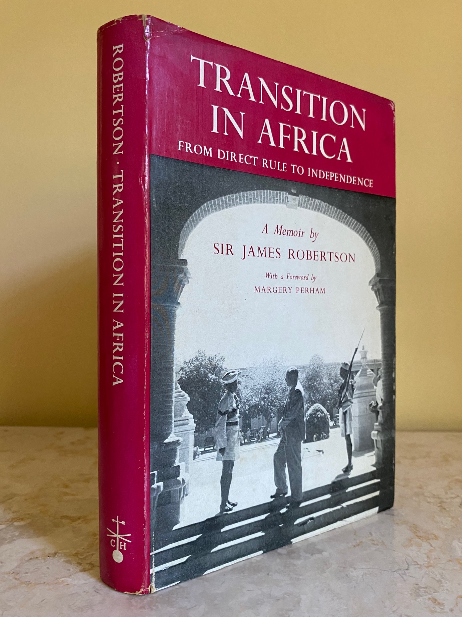 First edition hard back binding in publisher's original plum cloth covered boards, blocked and lettered gilt back. 8vo. 9½'' x 6¼''. After Oxford Robertson joined the Sudan Political Service from 1922 to 1953, serving appointments in Blue Nile, White Nile, Fung, and Kordofan provinces and was the Civil Secretary from 1945 to 1953. In this position in 1947 he was chairman of the Juba Conference. He was then sent to British Guiana in January 1954 by Oliver Lyttelton, the then Secretary of State for the Colonies to write the Robertson Commission Report to investigate the current crisis in the country due to the election of the People's Progressive Party, who were seen as too friendly with the Communist organisations that had led to the suspension of the constitution. He was then sent to Nigeria as a result of his work. He was Governor-General from 15 June 1955 to 16 November 1960 (representing the Queen as head of state from 1 October to 16 November 1960). Contains (xvi), 272 pp with monochrome photographs throughout. A little spotting to the closed text block edges. Very Good condition book in Very Good condition dust wrapper with rubbing to the spine ends and corners, not price clipped. Member of the P.B.F.A.