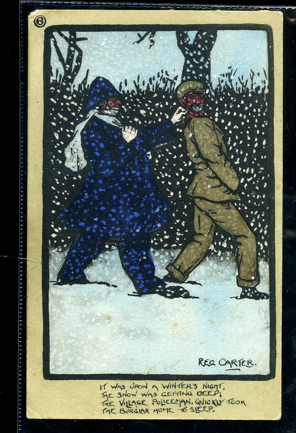 'It was upon a winter's night, The snow was gettin deep, The village Policeman quickly took The burglar home to sleep' | Vintage Comic Colour Post Card (Postcard)