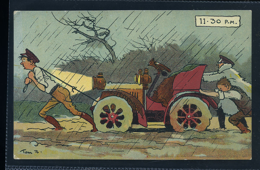 11:30 p.m. | Vintage Comic Colour Post Card (Postcard) Davidson Brothers Pictorial Post Cards | Motoring Series No. 2583 from Originals by Tom Browne, R.I.