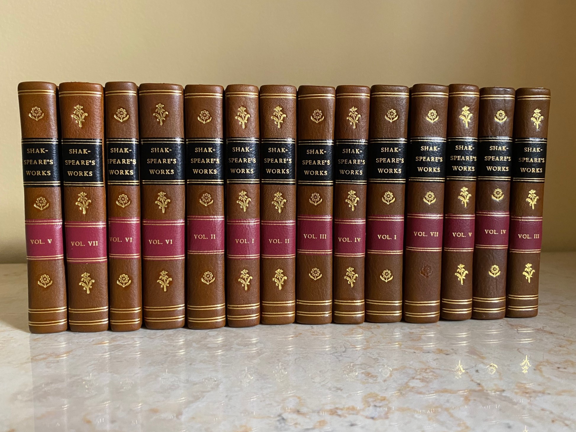 The Dramatic Works of William Shakspeare (Shakespeare, Shakspere, Shakespere, Shakespeare) | Volumes I and II: The Tempest, Two Gentlemen of Verona, Merry Wives of Windsor, Twelfth Night, Measure for Measure | Volumes III and IV: Much Ado About Nothing, A Midsummer Night's Dream, Love's Labour's Lost, The Merchant of Venice, and As You Like It. All's Well That Ends Well | Volumes V and VI: Taming of the Shrew, Winter's Tale, Comedy of Errors, Macbeth. Volume IV: King John, King Richard II | Volumes VII and VIII: King Henry IV. Part I, King Henry IV. Part II, and King Henry V. King Henry VI. Part I, King Henry VI. Part II | Volumes IX and X: King Henry VI. Part III, and King Richard III. Volume VI: King Henry VIII, Troilus and Cresida, Timon of Athens | Volumes XI and XII: Coriolanus, Julius Caesar, Antony and Cleopatra, Cymbeline, Titus Andronicus | Volumes XIII and XIV: Pericles, King Lear, Romeo and Juliet, Hamlet, Othello. | Fourteen (14) Volumes Complete.