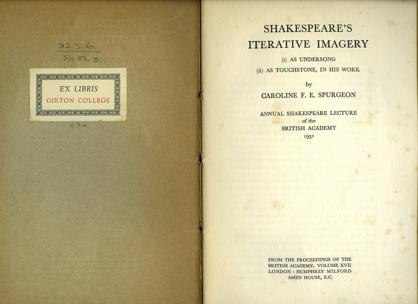 Published by Humphrey Milford Oxford University Press, Amen House, London 1935. London 1935.