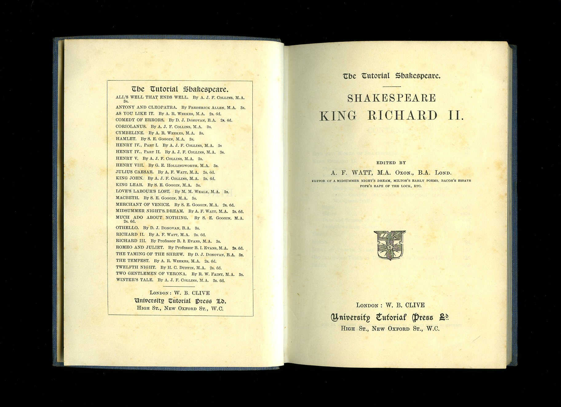 Shakespeare, William [1564-1616] Edited by A. F. Watt and G. E. Hollingworth