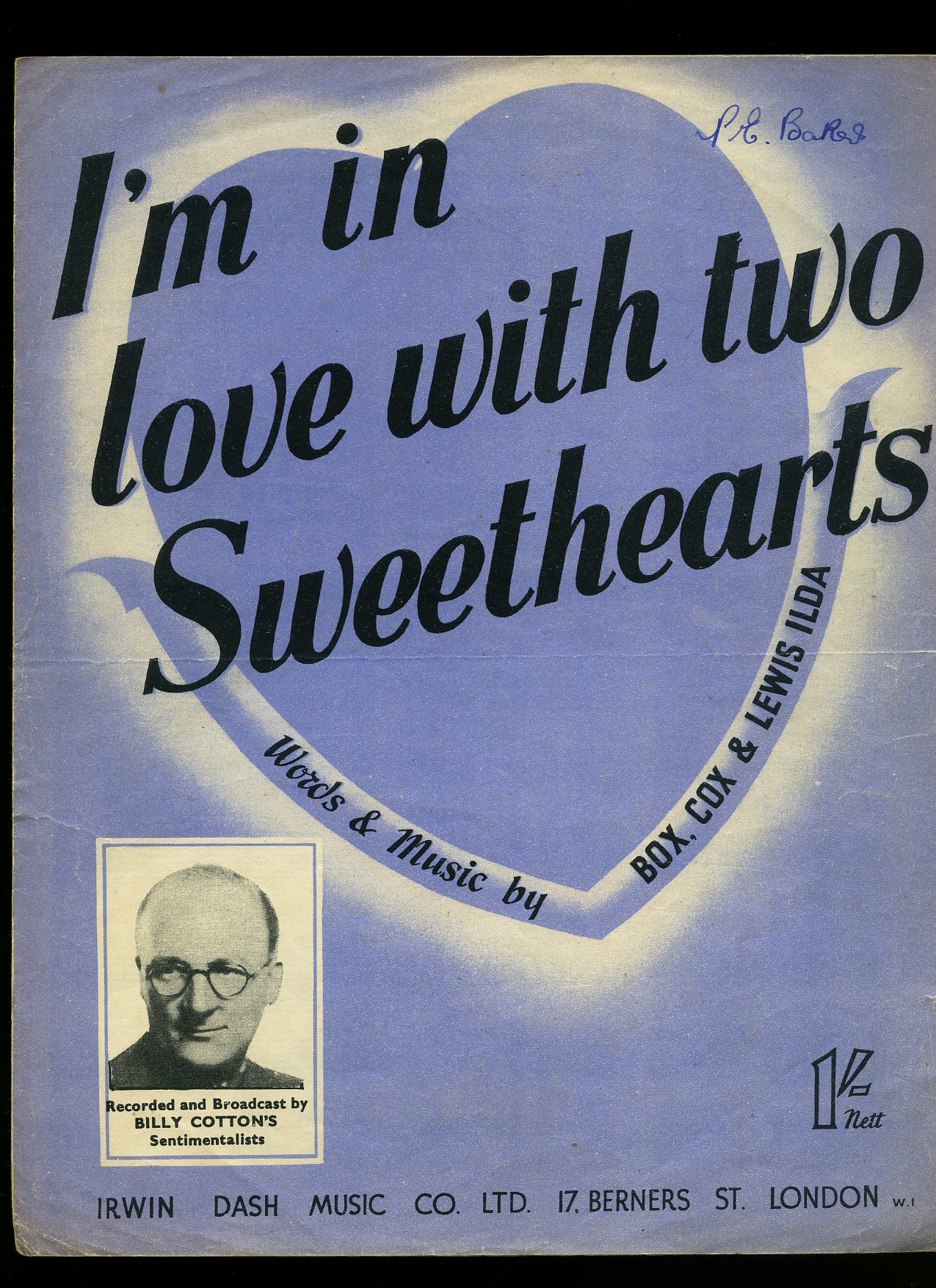 Vintage piano sheet music in colour illustrated printed paper covers. 13½'' x 10¾''. Contains 6 pages folded sheet music including the covers. Scored for voice and piano with lyrics. In Very Good clean condition. Member of the P.B.F.A.