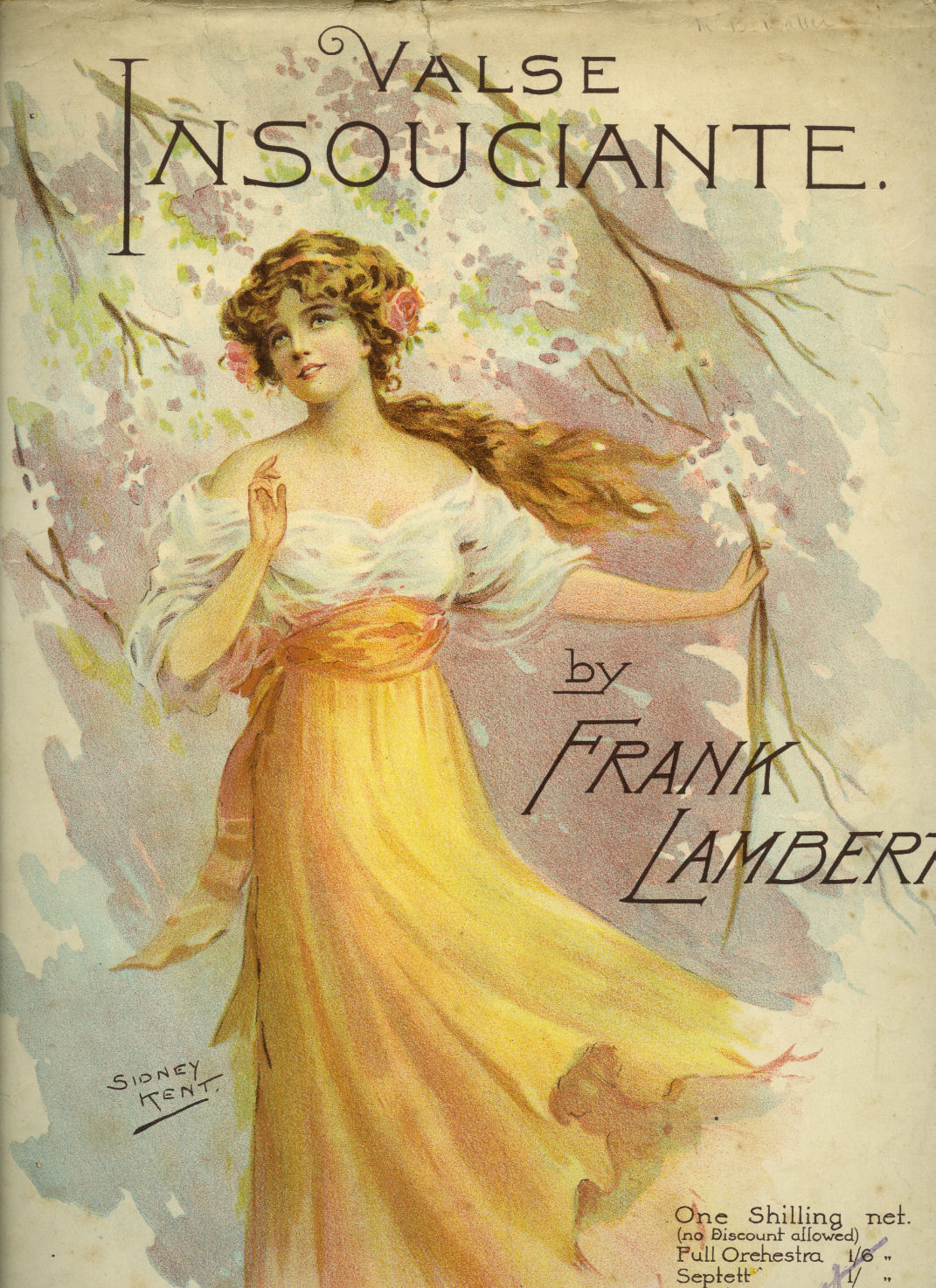 Vintage piano sheet music in colour illustrated paper covers. 14'' x 10½''. Contains 8 pages including the covers, disbound sheet music carefully extracted from a previously stitched bound collection. Scored for the pianoforte. The edges of the covers been professionally restored with internal repairs and in Very Good condition. Member of the P.B.F.A.