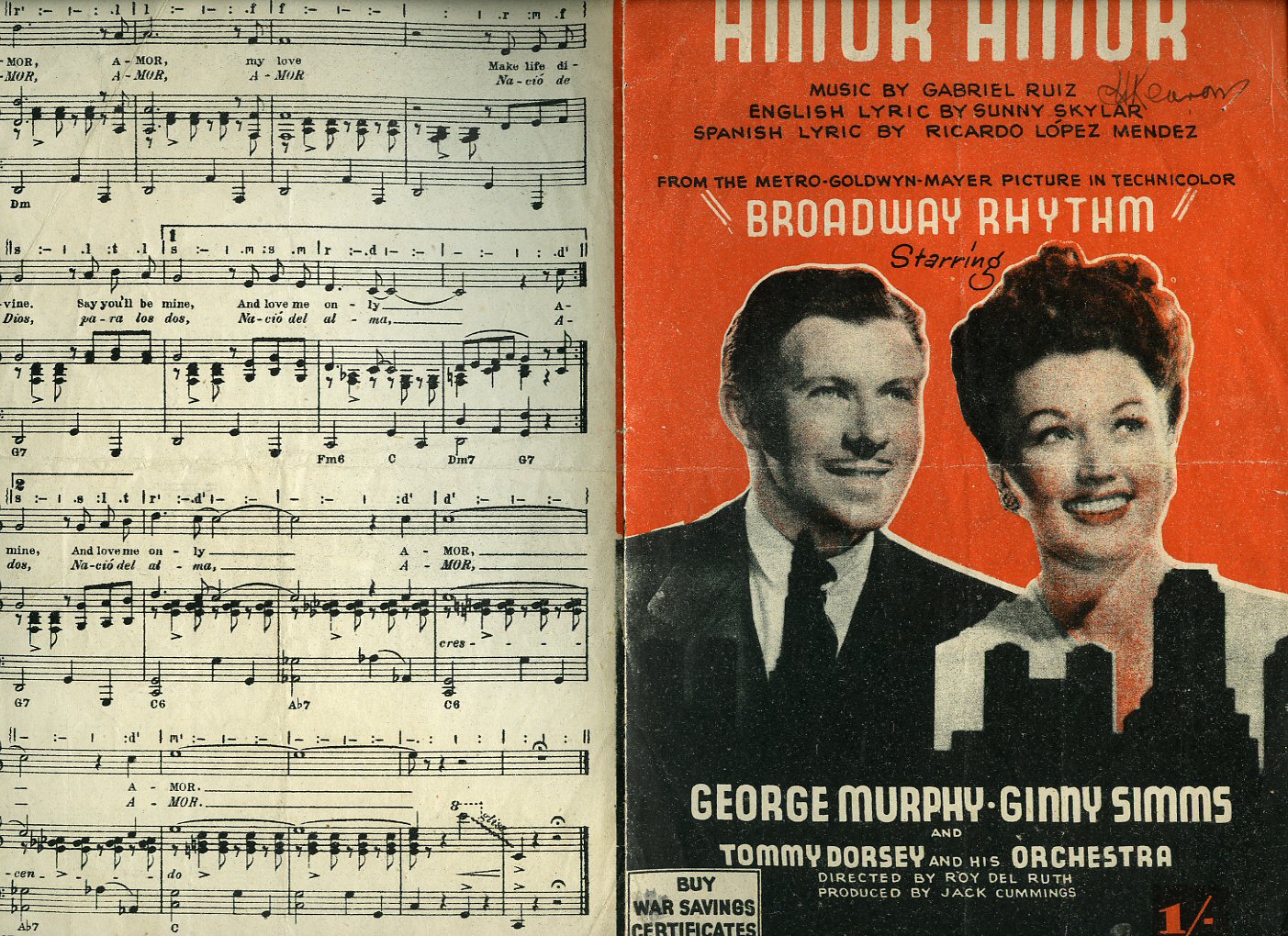 Vintage piano sheet music in colour illustrated printed paper covers. 13½'' x 10¾''. Contains 6 pages folded sheet music including the covers. Scored for piano without any lyrics. Small tears to the edges and in Very Good condition. Member of the P.B.F.A.