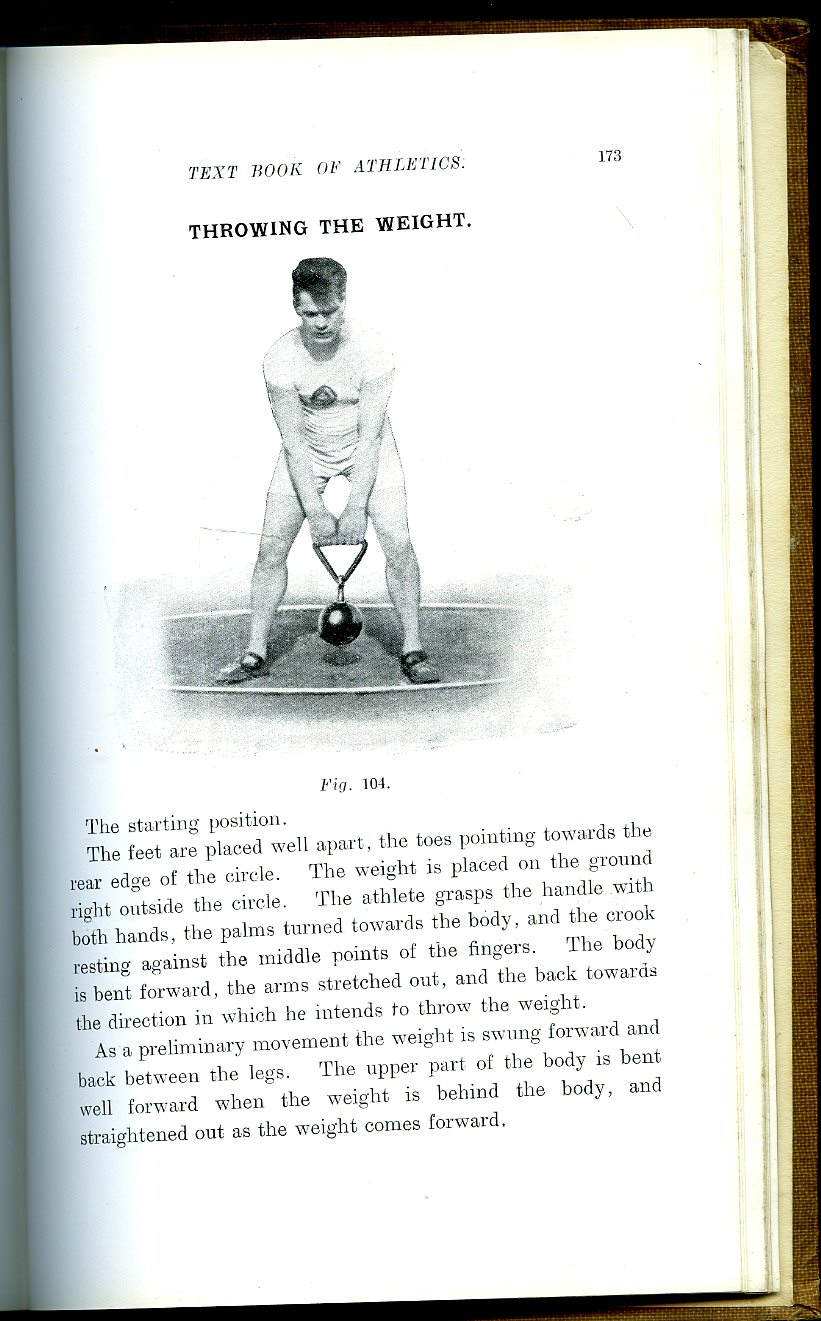 Hard back publisher's original russet cloth covers, black stamping to spine and upper panel. 8vo 9" x 5¾" 190 pp. Produced on semi-glossy acid free paper. Chapters and monochrome photographic illustrations on : Winter Training, Running, Sprinting, Starting, 400m, Relay Race, 110m Hurdle, 800m, Long Distance Running, Cross-country Running, The Marathon Race, Walking, The Standing High Jump, The Standing Broad Jump, The Running High Jump, The Running Broad Jump, Putting the Shot, Throwing the Javelin and Discus and Hammer, Throwing the Weight, Athletic Outfit, Hints to the Athlete, and The Breathing Process. Former name and date [1932] to front end paper. In VG clean and bright condition with very small rubs to corners and spine tips. Member of the P.B.F.A.