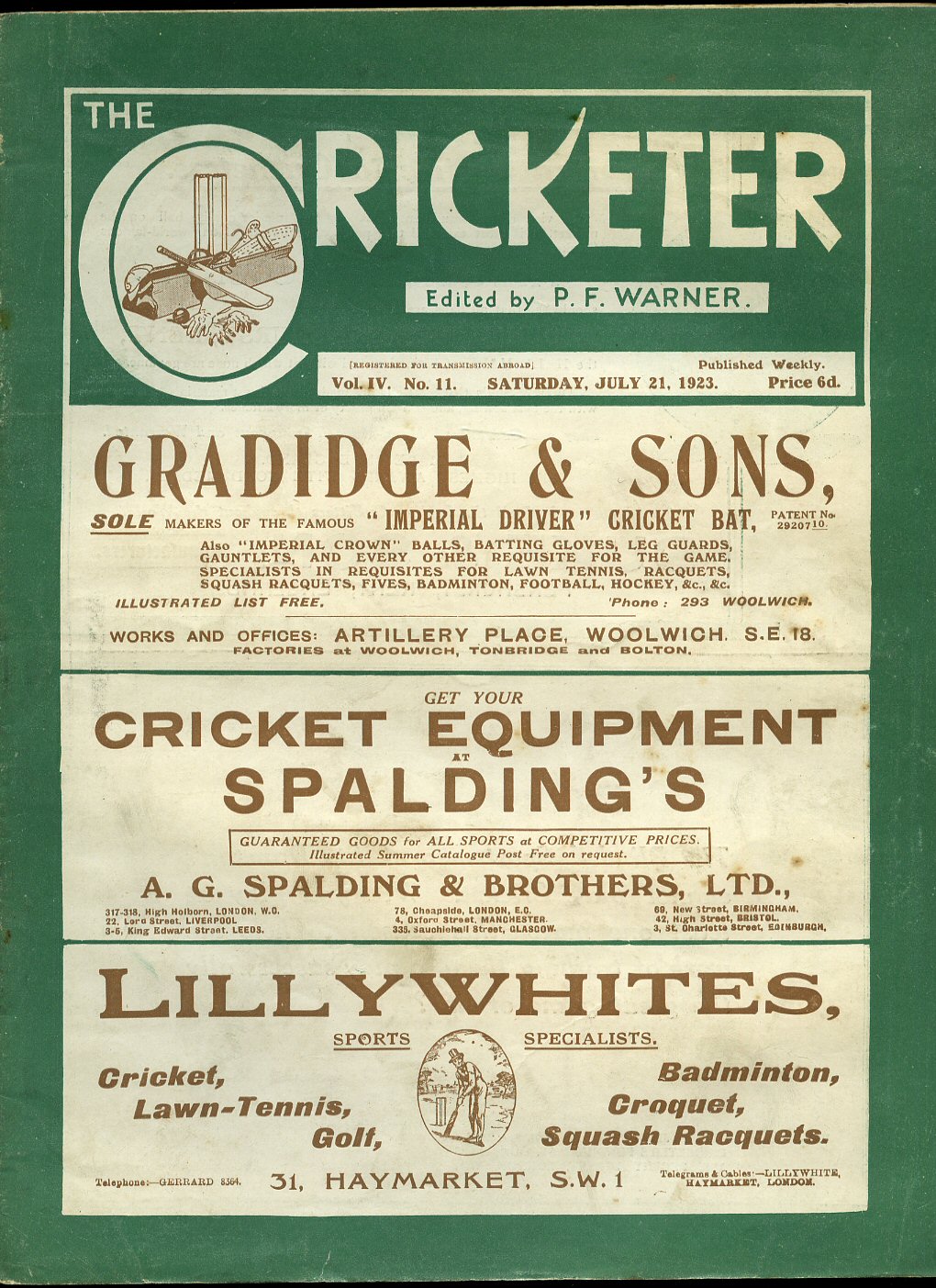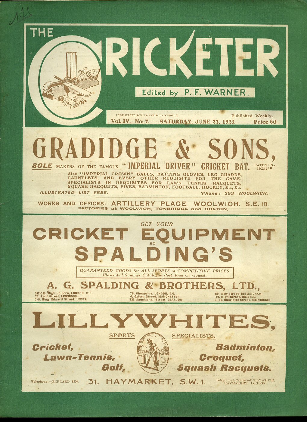 The Cricketer (Weekly Magazine) Volume IV Number 11 Saturday July 21st 1923.